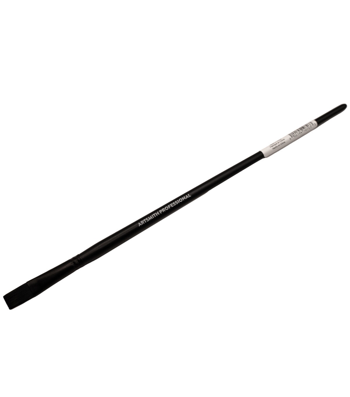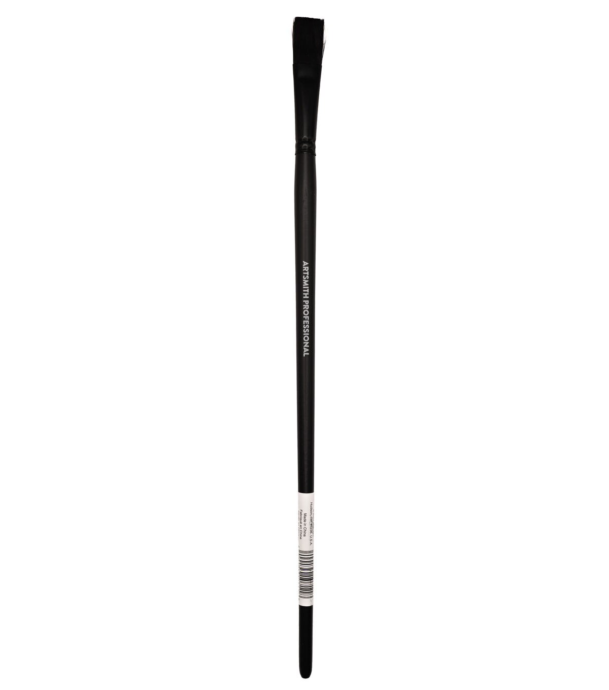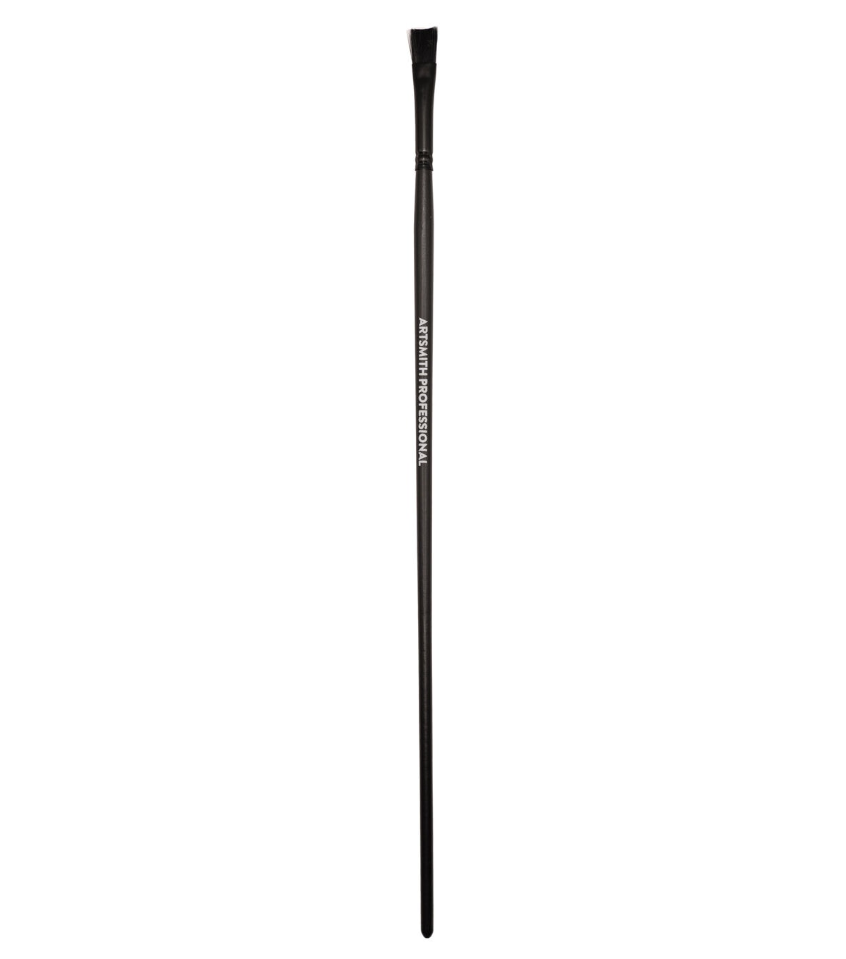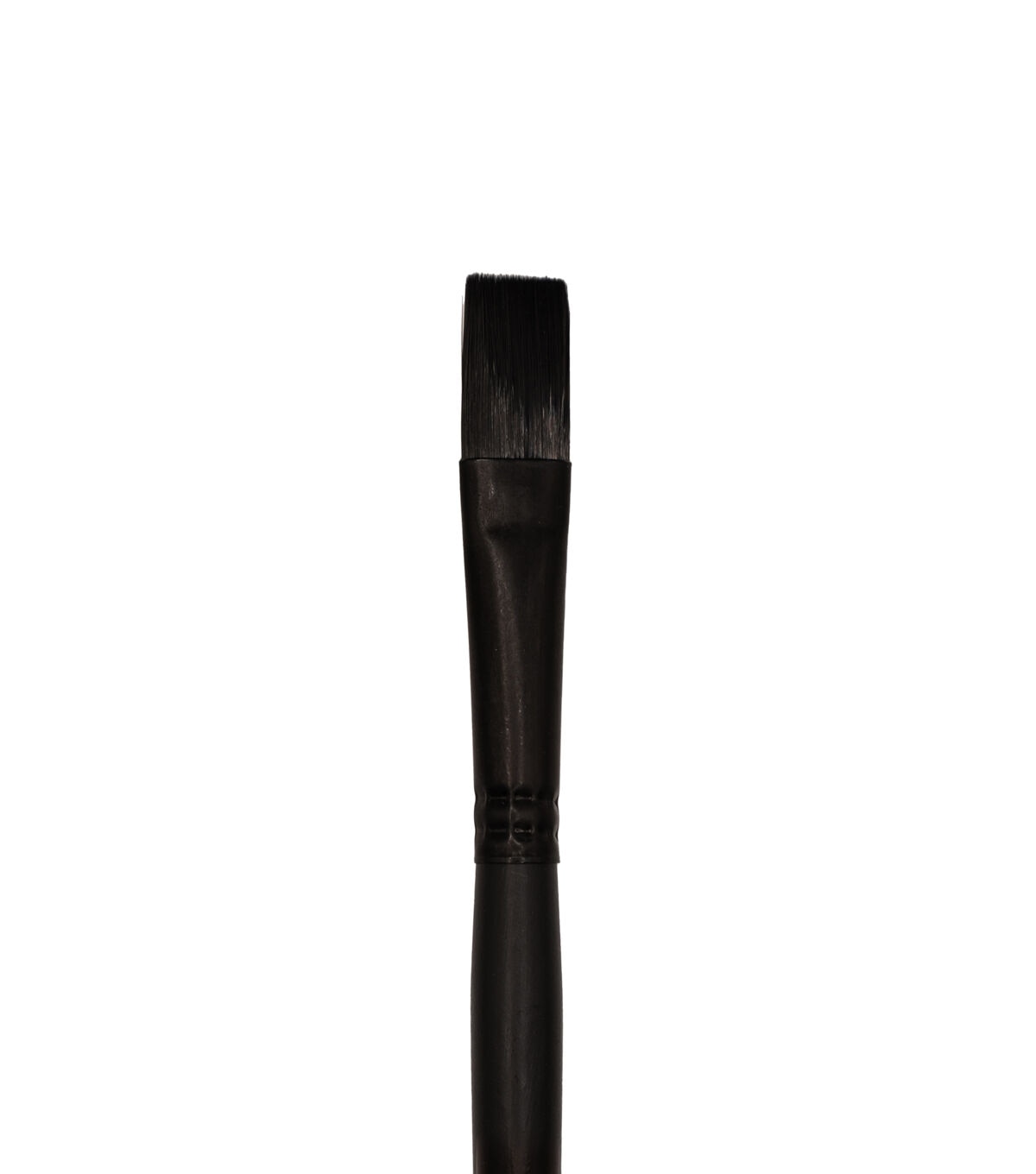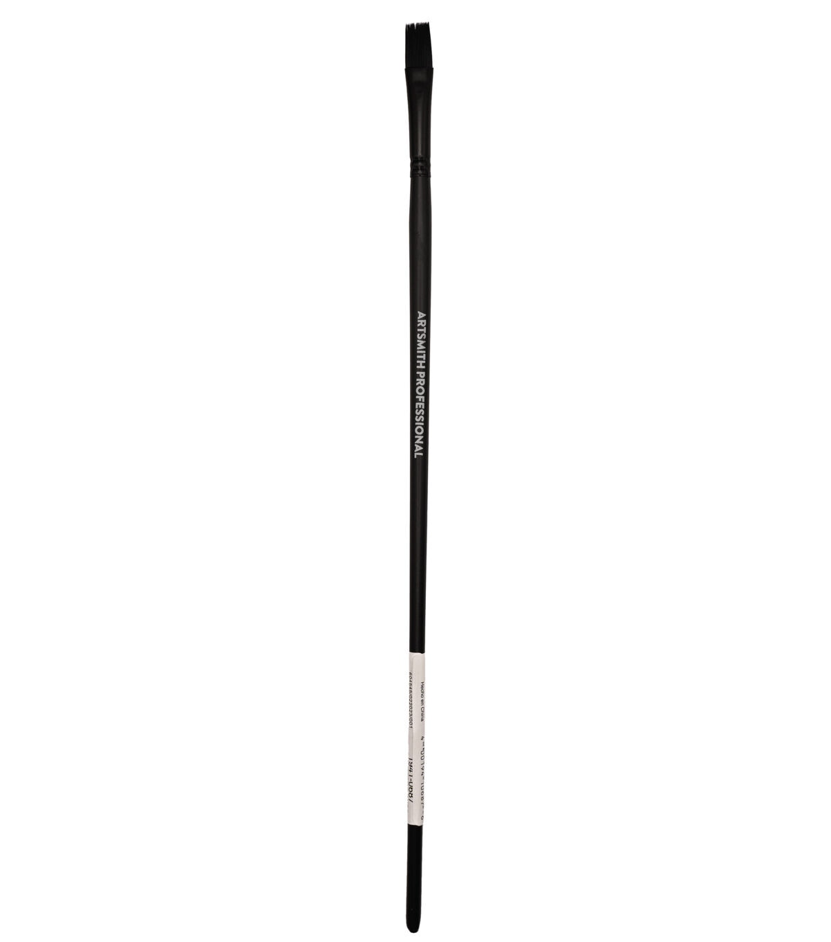 This sleek, all black, professional brush from Artsmith features multi-diameter black taklon with matte black plated brass ferrule, and a kiln-dried wooden handle. Ideal for use with acrylic, watercolor, or oil paint!