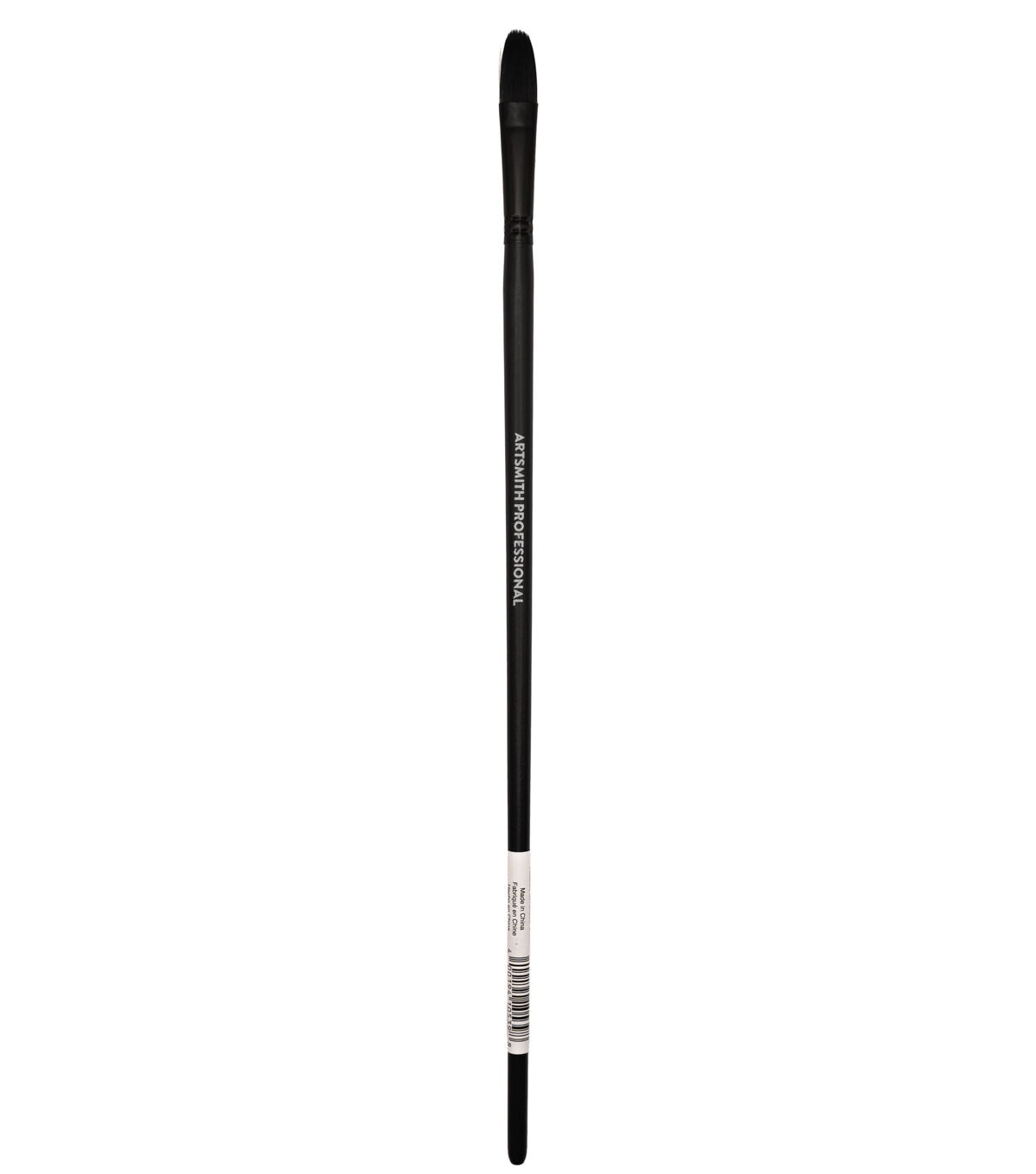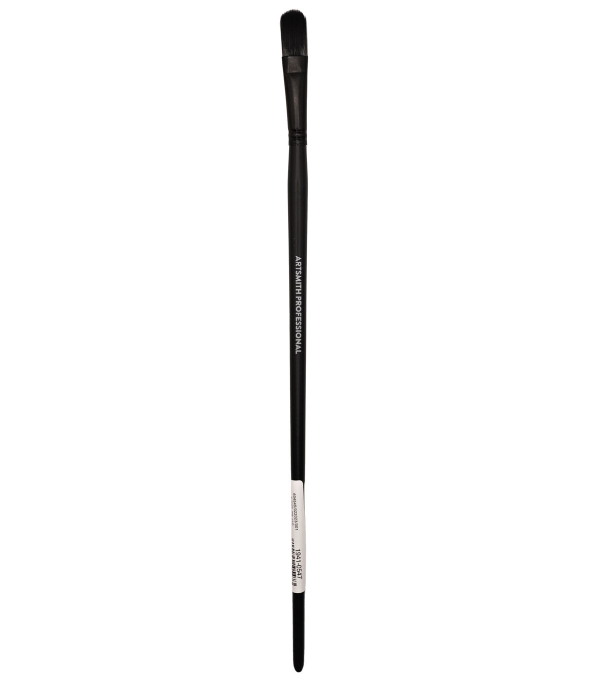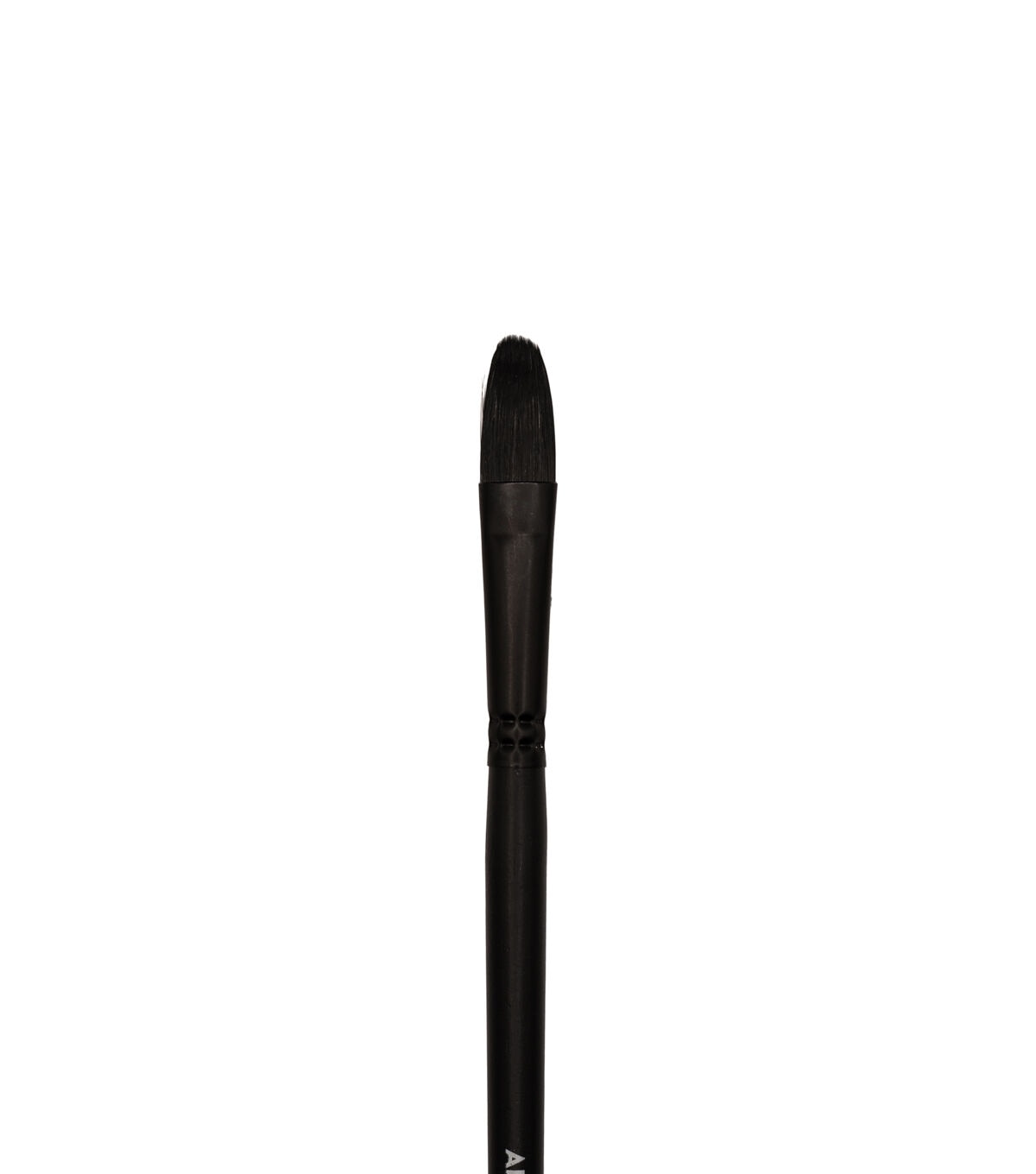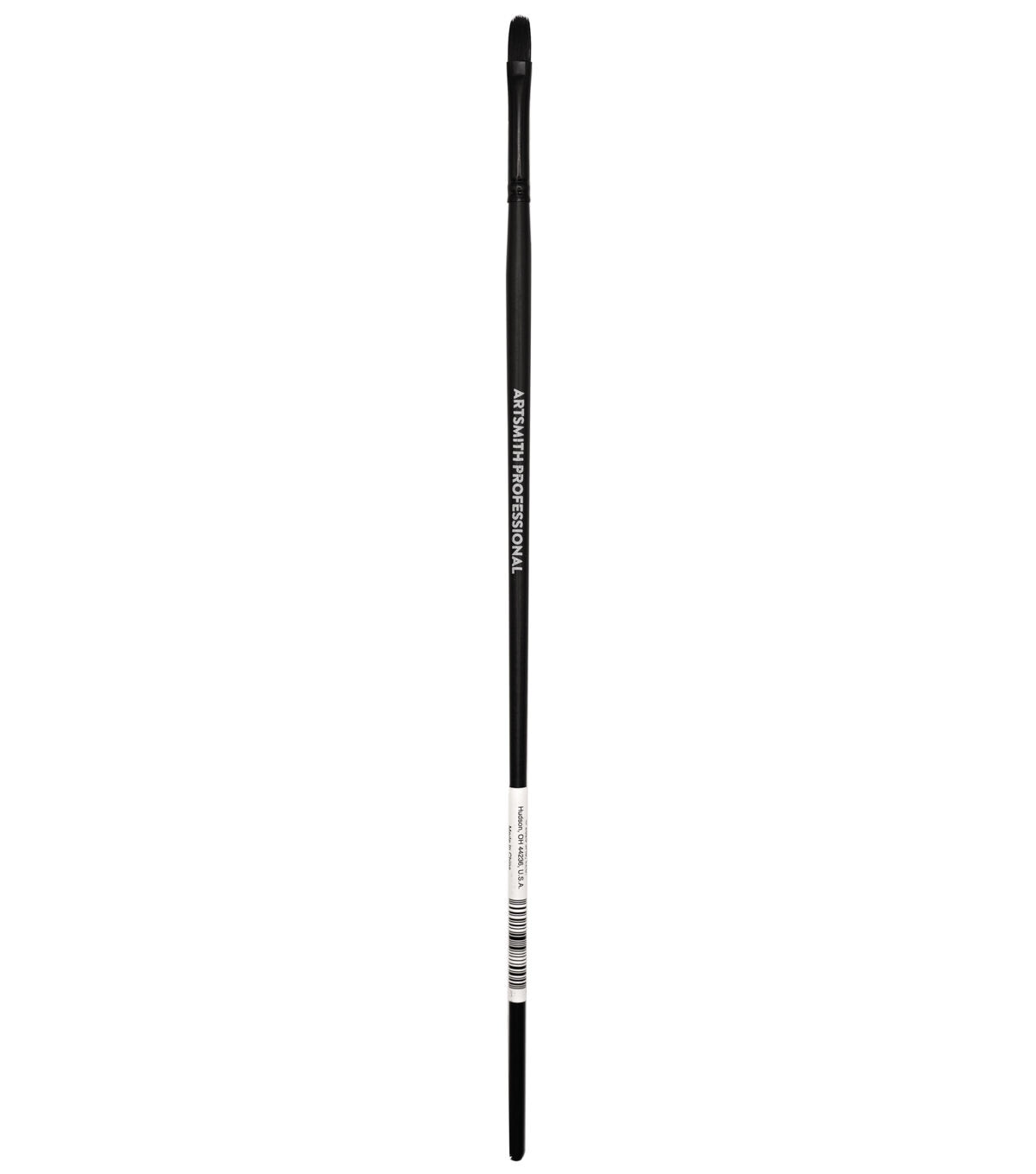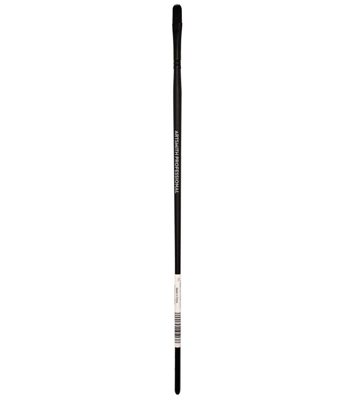 This sleek, all black, professional brush from Artsmith features multi-diameter black taklon with matte black plated brass ferrule, and a kiln-dried wooden handle. Ideal for use with acrylic, watercolor, or oil paint!