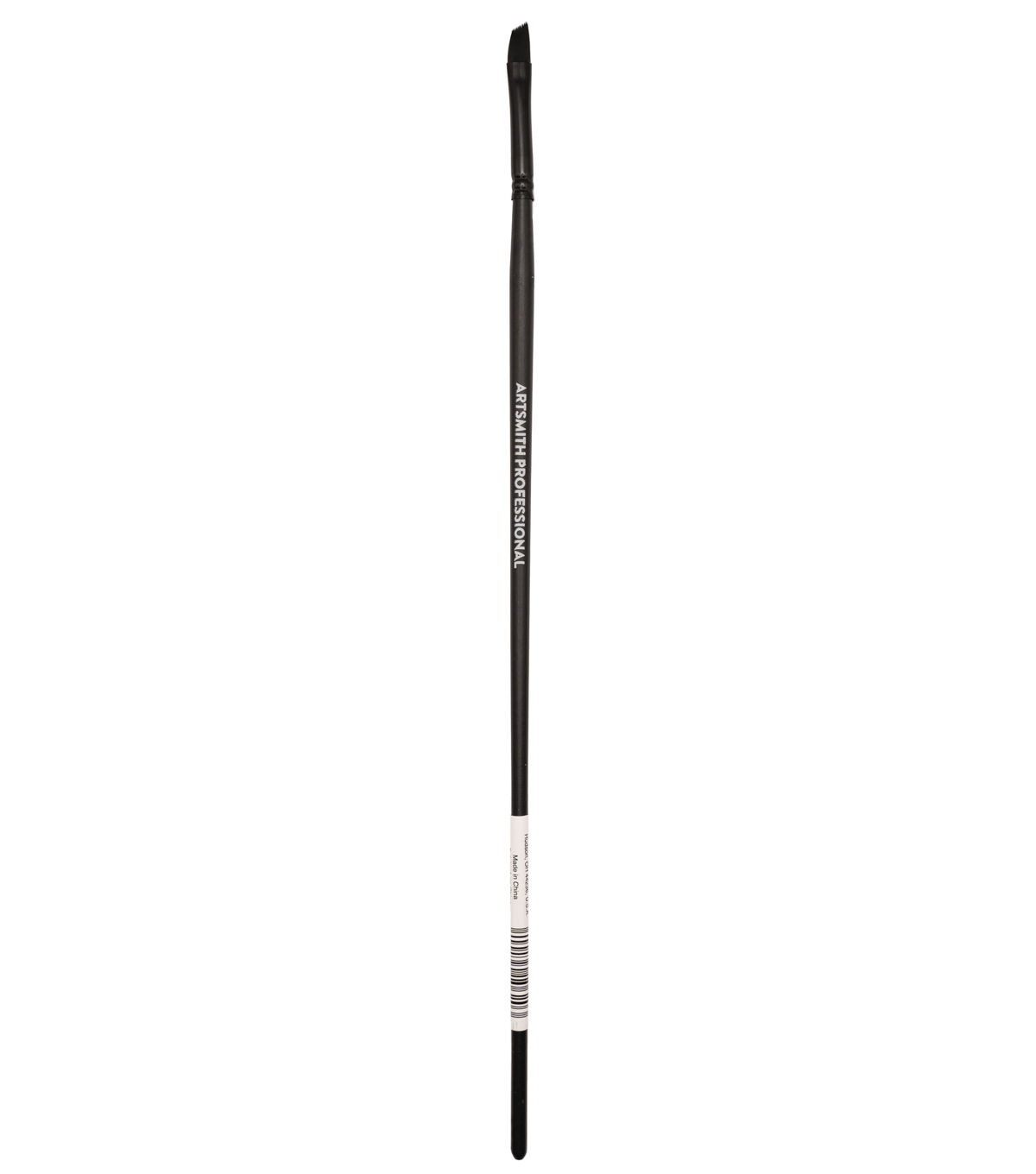 This sleek, all black, professional brush from Artsmith features multi-diameter black taklon with matte black plated brass ferrule, and a kiln-dried wooden handle. Ideal for use with acrylic, watercolor, or oil paint!