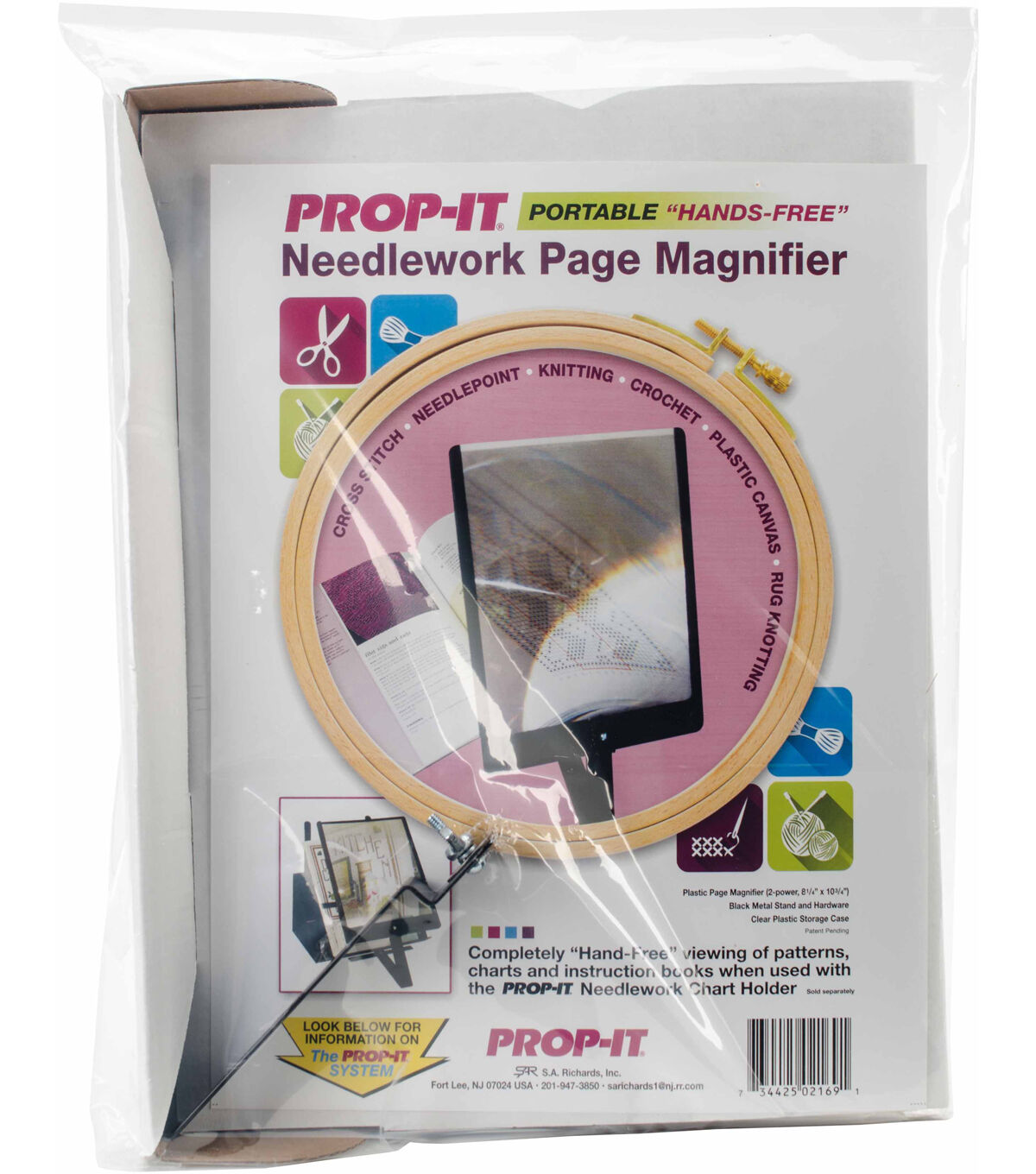 The completely hands free way to view and follow detailed needlework patterns, charts and instruction books! Use with PROP-IT Pattern Holder (sold separately). This package contains one page magnifier. Made in USA.