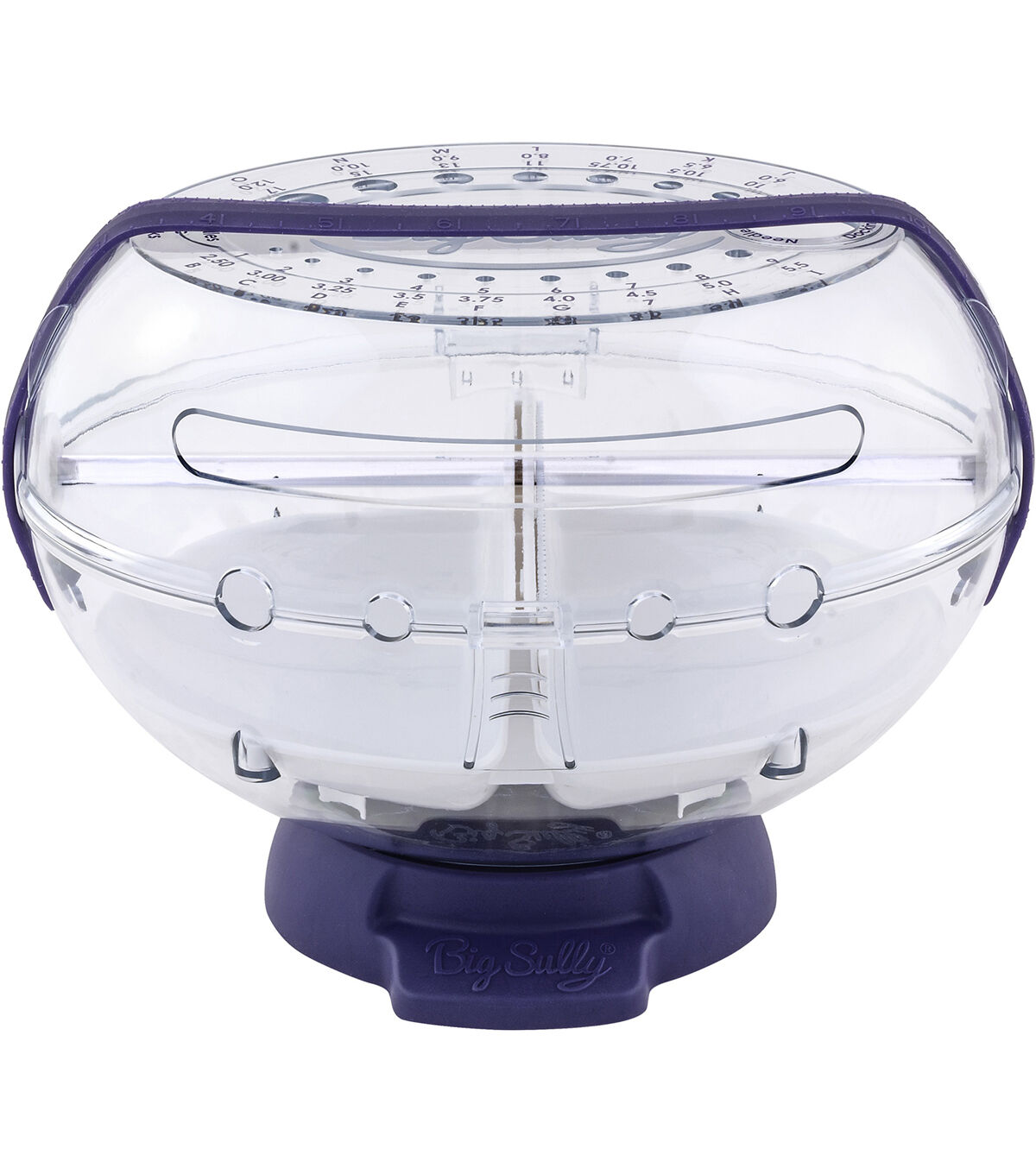 The Prym Big Sully is a large, multi-functional clear globe that provides a protective home for your yarn and accessories. It will hold most regular size skeins, yarn cakes, yarn balls, and cones. Multiple yarn channels, ball tray, and yarn spindle make this a brilliant accessory for all your fiber art crafts. The integrated needle gauge and swatch ruler help you start your projects with the right tools and stitch size. Non-slip base removes to store all of your yarn accessories.