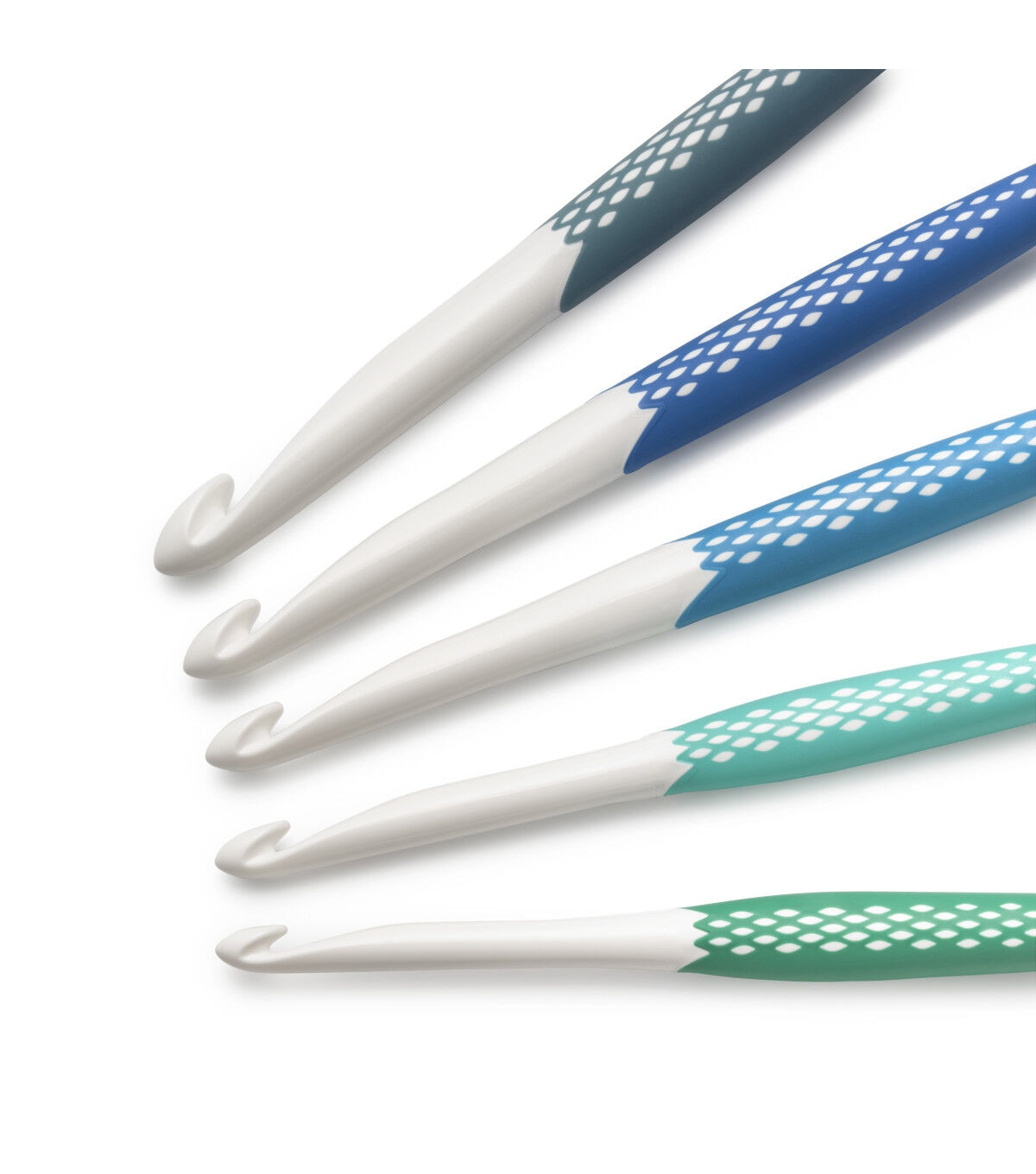 - Optimized hook easily catches yarn and glides it effortlessly through stitches