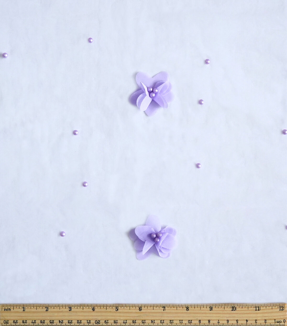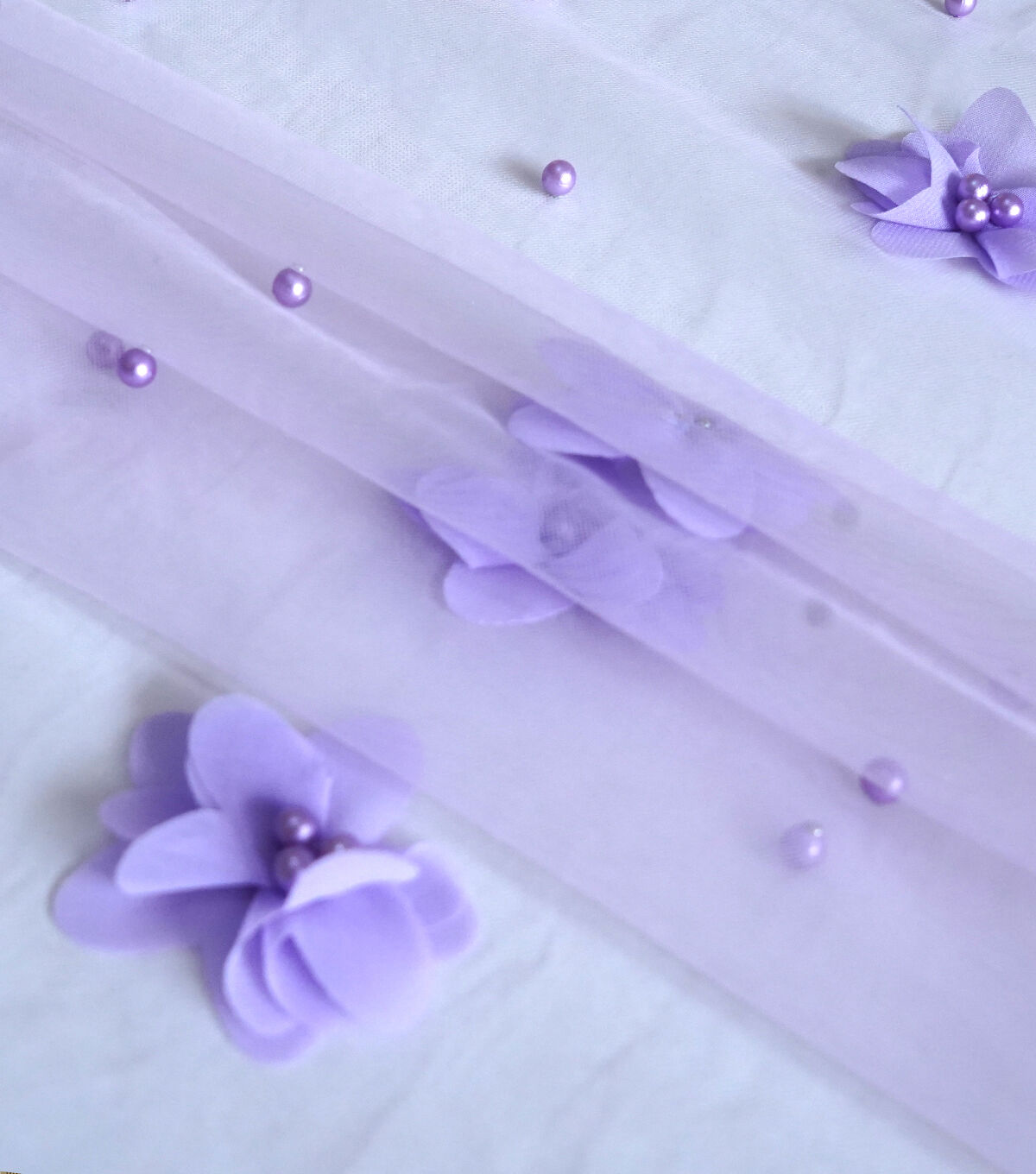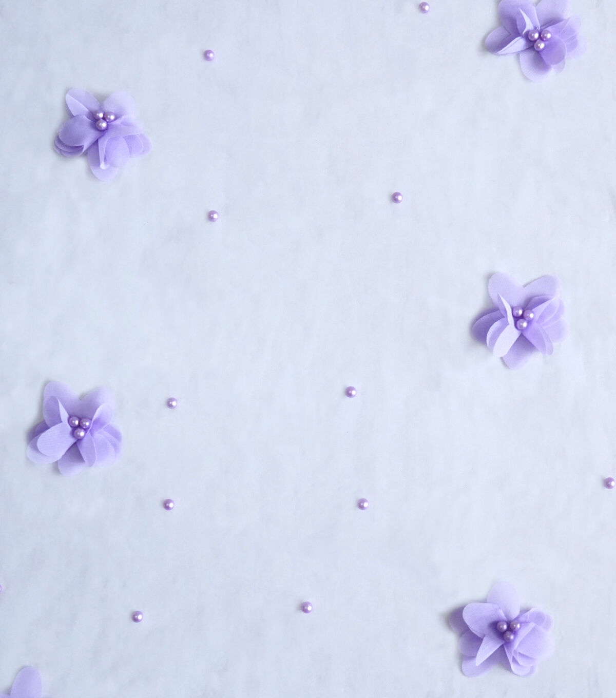• Purple 3D Floral with Pearls Mesh Fabric by Sew Sweet