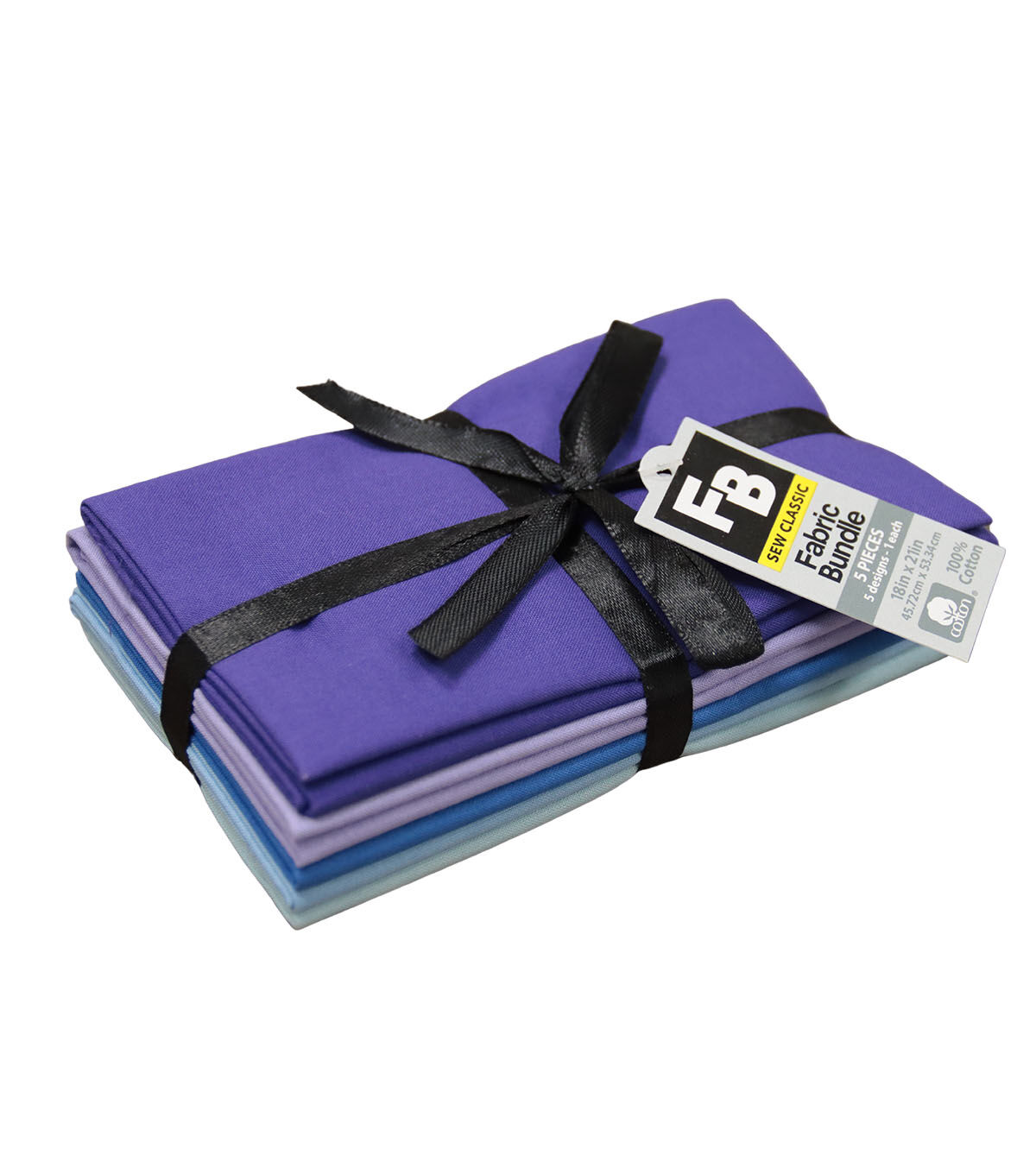 • Purple and Blue 5Pc Sew Classics Cotton Fabric Quarter Bundle