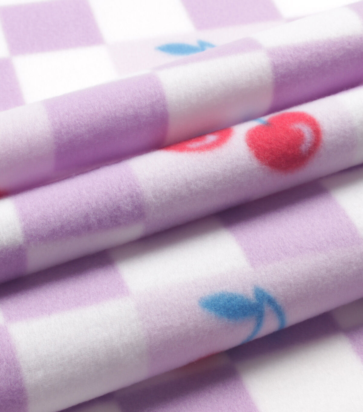 Stay Cozy and Stylish with Purple Cherry Check Blizzard Fleece Fabric