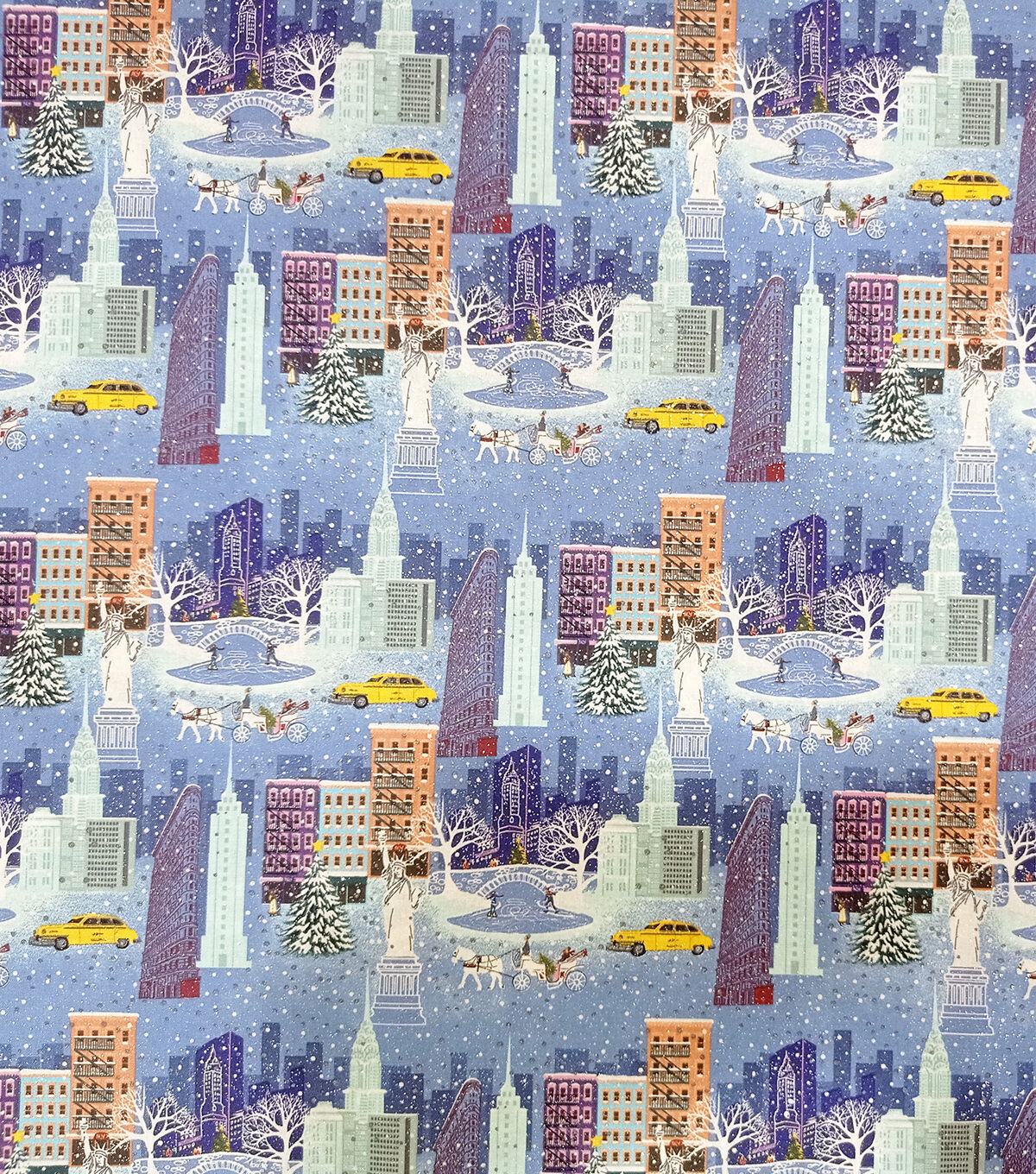 Our Purple Winter in the City Novelty Glitter Cotton Fabric is easy to care for, with machine wash gentle cold, nonchlorine bleach, tumble dry low, and cool iron instructions.