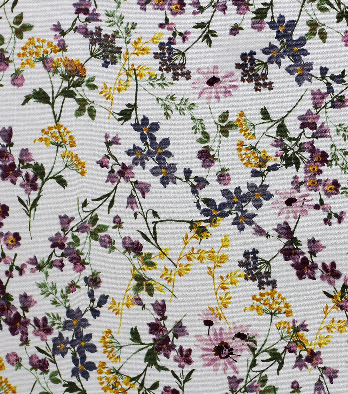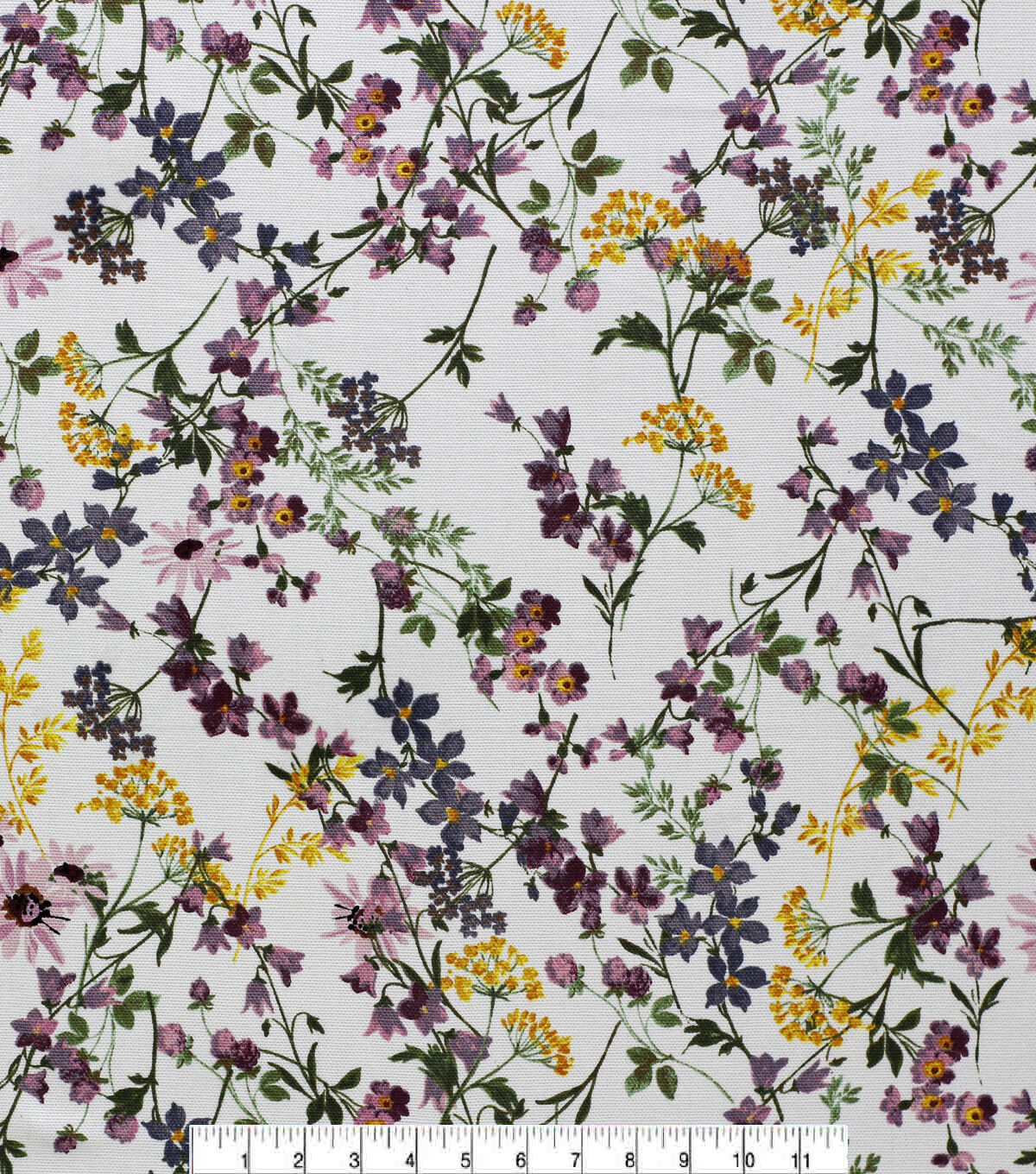 Purple Yellow Watercolor Floral Cotton Canvas Fabric
