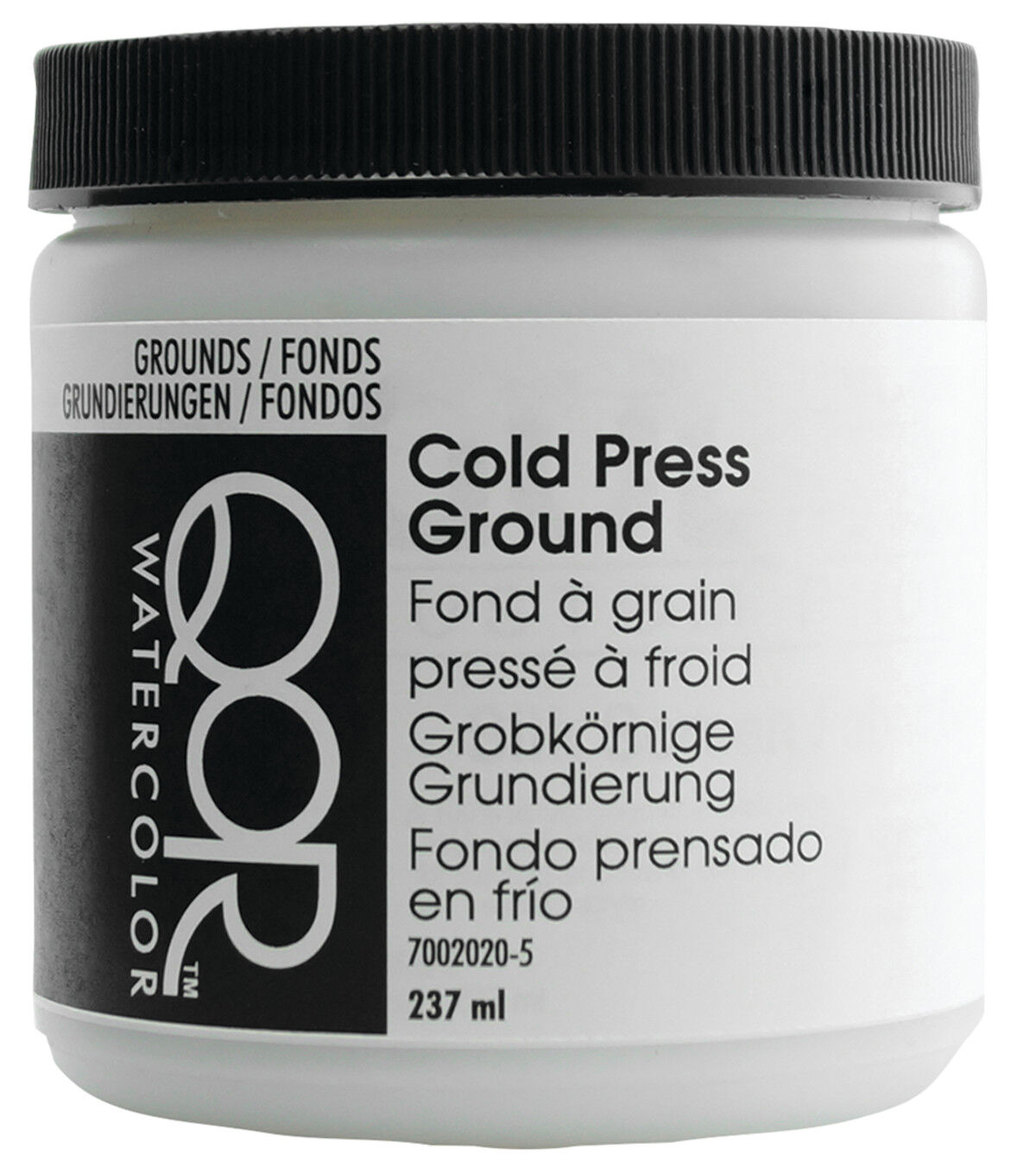 This cold press ground dries to a unique rough surface and looks like handmade paper with all its beautiful imperfections. Create nooks and crannies to catch the watercolor, allowing for interesting lifting effects that you can't get with traditional paper surfaces. Applied with a dry palette knife, the texture will be similar to rough handmade paper. Use a bit of water on your palette knife and run over the wet application to eliminate some of the roughness for a surface more like cold press paper.