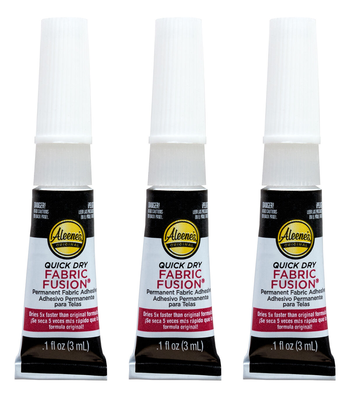 Whether you know how to sew and don’t have time, or have never picked up a needle and thread in your life, Quick Dry Fabric Fusion is an easy alternative! This fabric glue has all of the power and strength of the original formula but dries up to five times FASTER! Use it when you’re short on time for a permanent bond that remains flexible, even after washing (yes, you can wash it!) – so your fabrics move with you, not against you. Pack includes three 0.1 fl. oz. tubes of Quick Dry Fabric Fusion that are perfect for carrying in your bag, keeping in your desk drawer or for on-the-go glue needs!