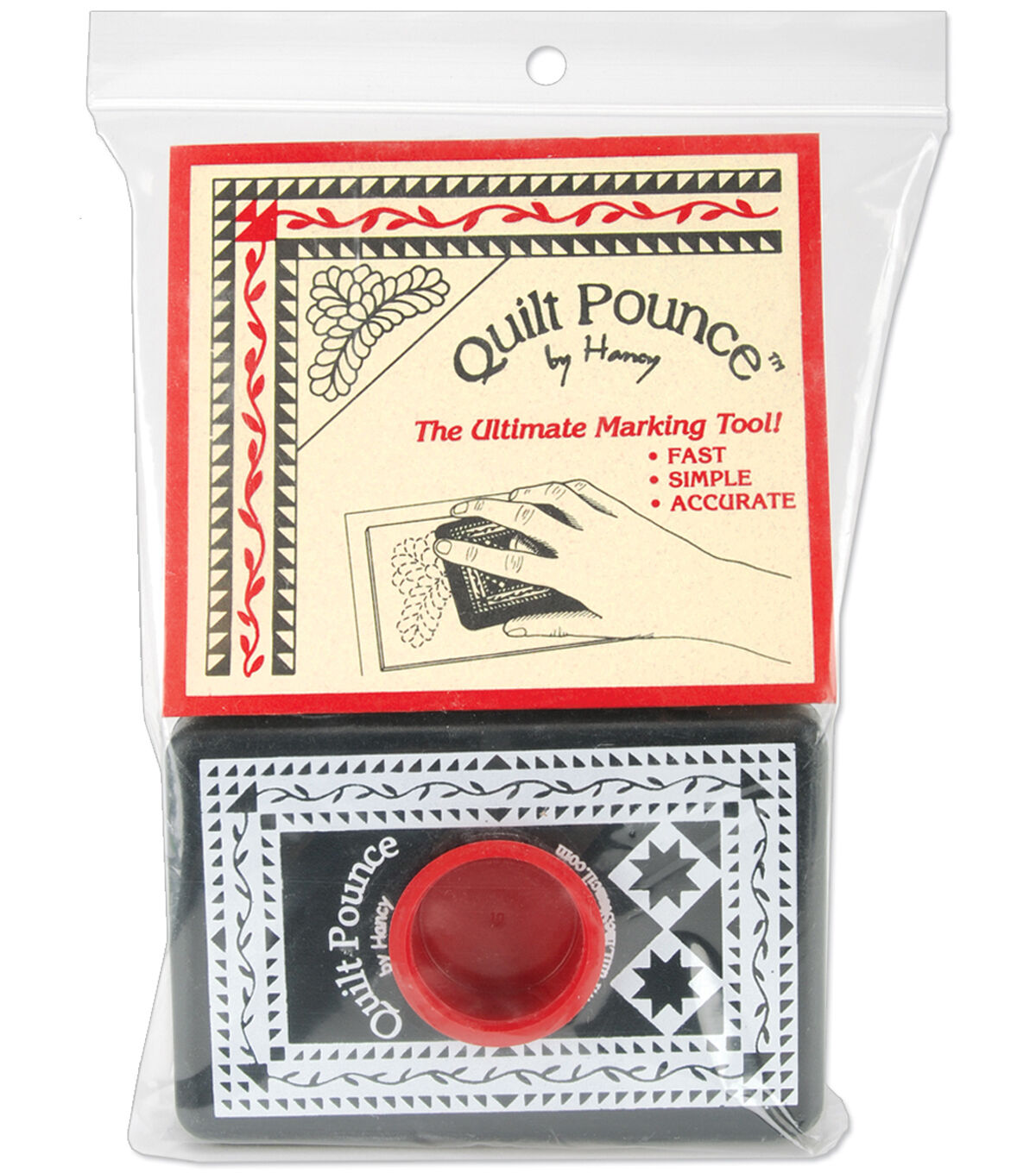 The perfect tool for transferring any sized stencil to any type of fabric for machine or hand embroidery. It's so simple! Lay your stencil down; run the filled pounce pad over it and the design is transferred. Features: saves time; accurate; safe for all fabrics; extremely easy to use; includes 2 ounces of powder; and is non-toxic; chalk washes of. Pad measures approximately 3x4 inches. Imported.