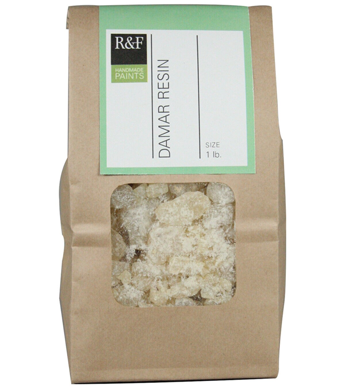 Damar resin, a component of encaustic paint, is a tree resin that allows encaustic paints to be buffed to a higher, more translucent surface and helps prevent blooming - the clouded after-effect that can occur with wax. It can also be used when making encaustic medium, or to coat for panels and paper to be used with encaustics.