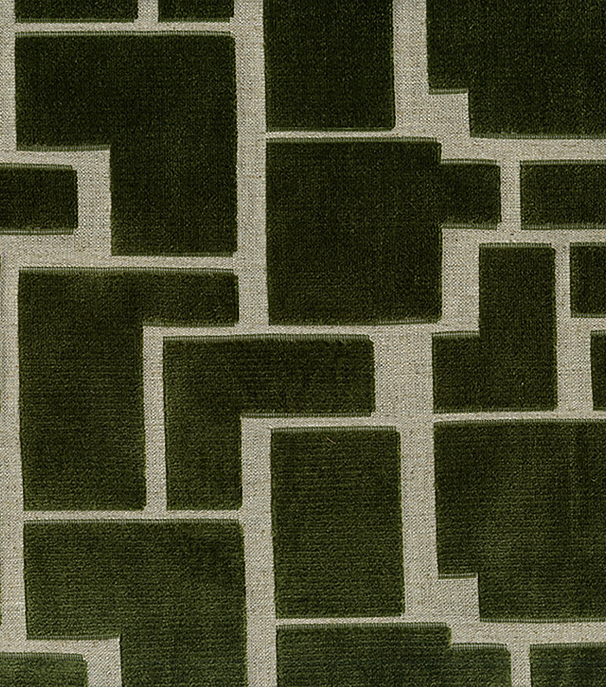 A modern block chenille cut velvet. This contemporary design sits on a very organic woven base and is featured in our richgreen shade.