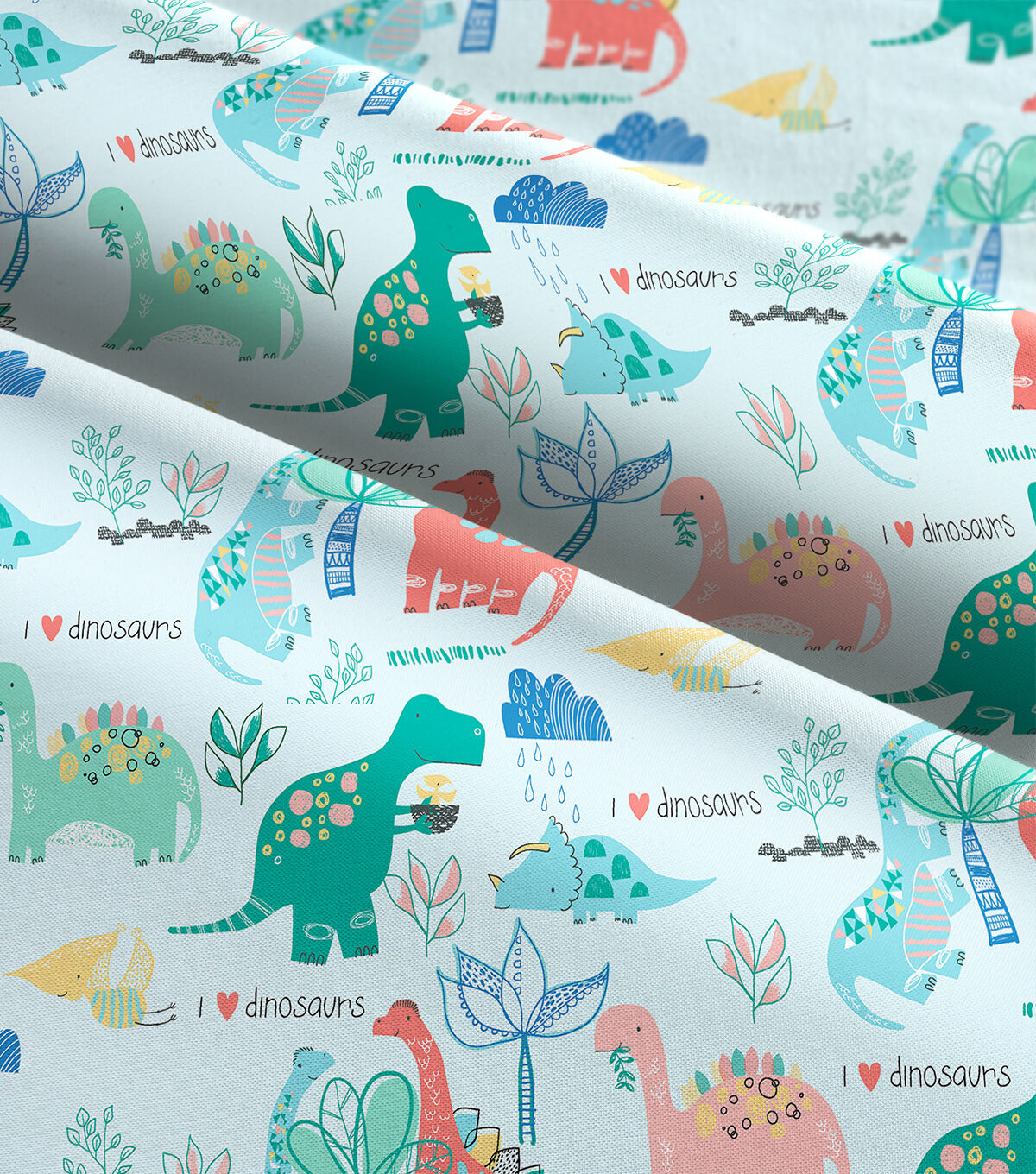 • Rainbow Dino Pack Nursery Cotton Fabric