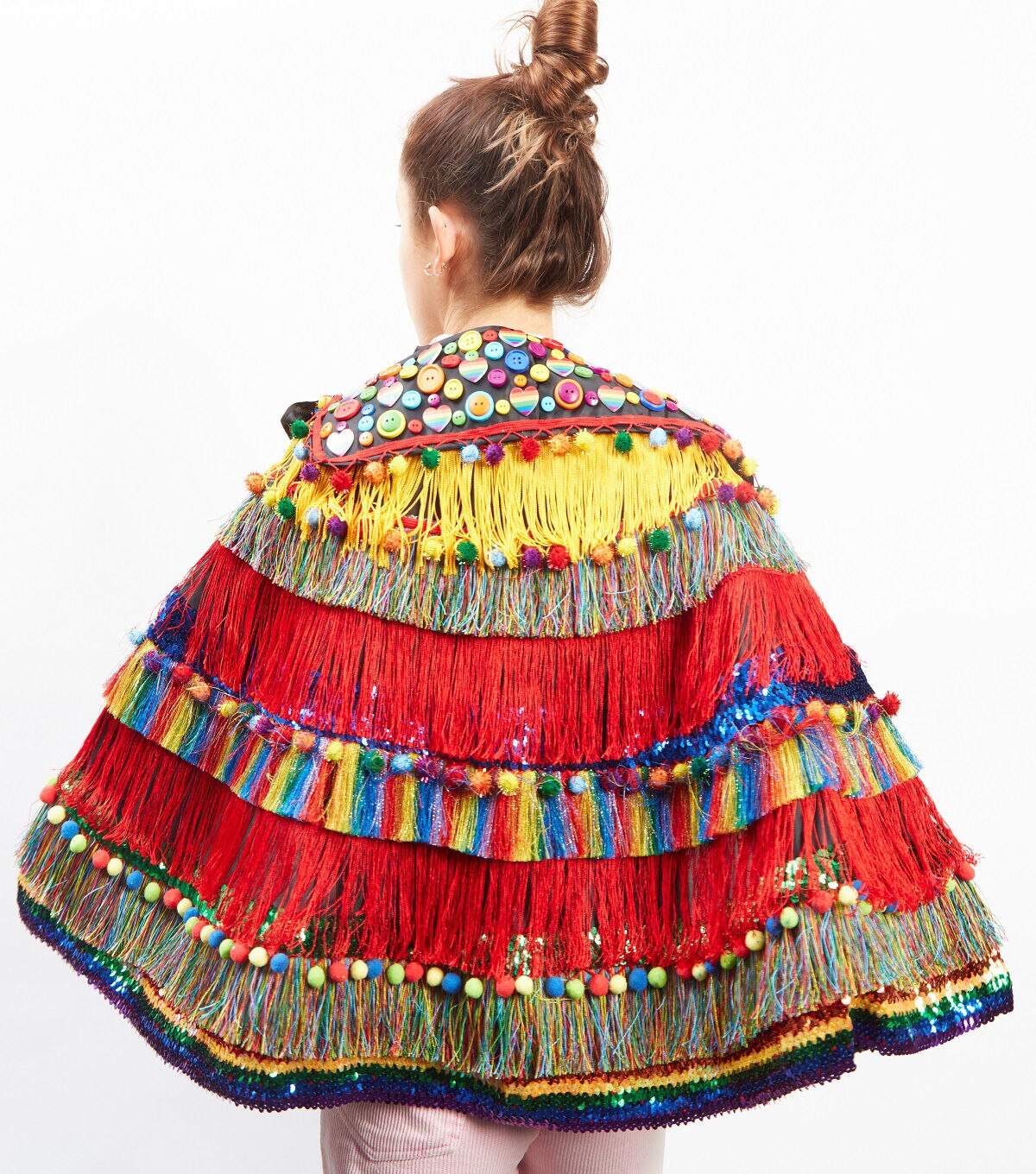 This 3 inch rainbow metallic fringe trim is a metallic/polyester blend. This trim is great to add to lamp shade, pillows, totes and more.
