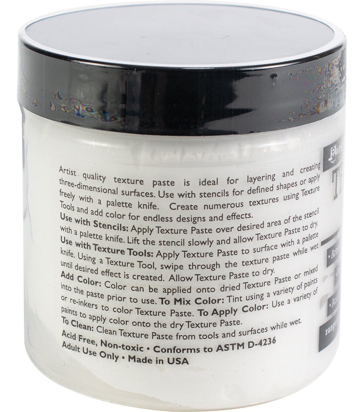 Take your DIY projects up a notch with the Ranger Texture Paste. This artist quality texture paste is ideal for layering and creating three-dimensional surfaces. It is non-toxic and acid free. You can use this texture paste with stencils for defined shapes or apply it freely with a palette knife. The package contains one jar of texture paste.