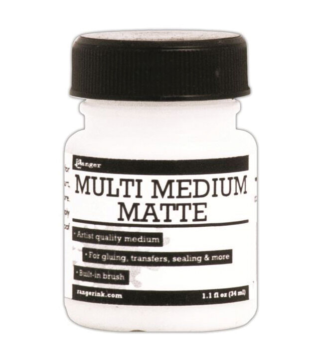 The Ranger Multi Medium Matte Jar with Built in Brush is ideal for gluing, image transfers, sealing art, extending paint, creating glazes and more. You can use it on paper, metal, glass, plastic, fabric and more. It dries clear and is waterproof when dry. This package contains one bottle of multi medium matte. It is acid-free and non-toxic.