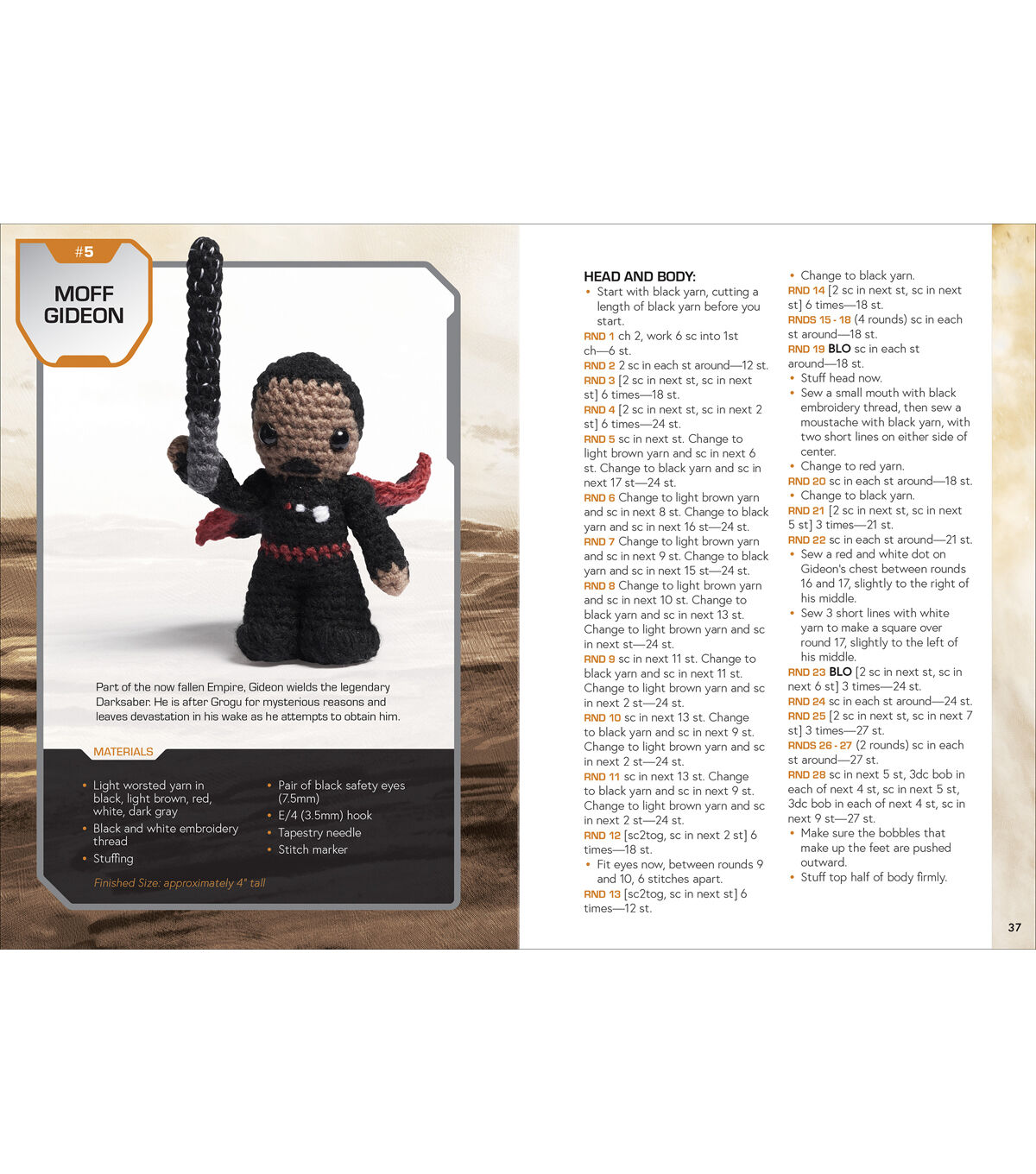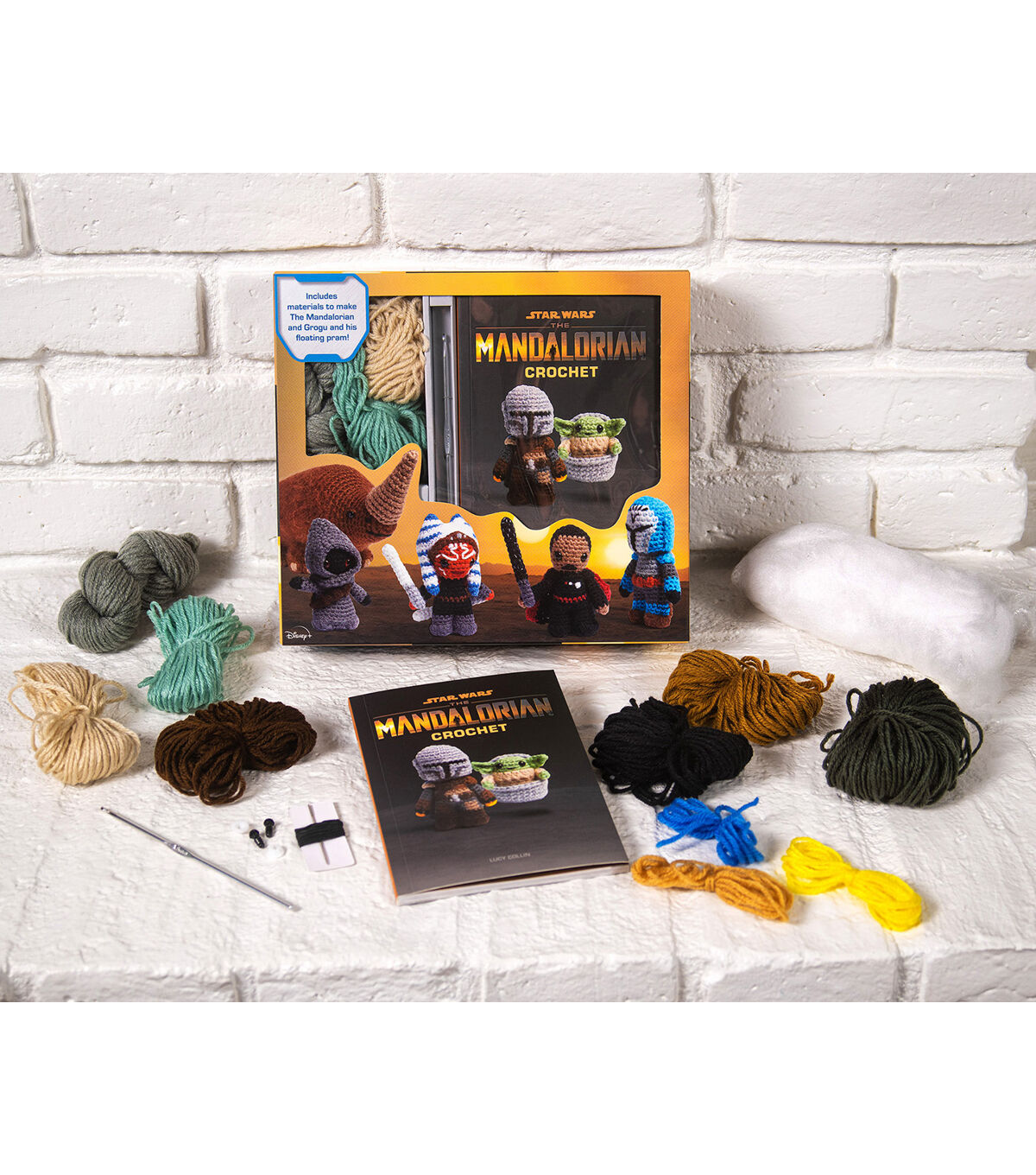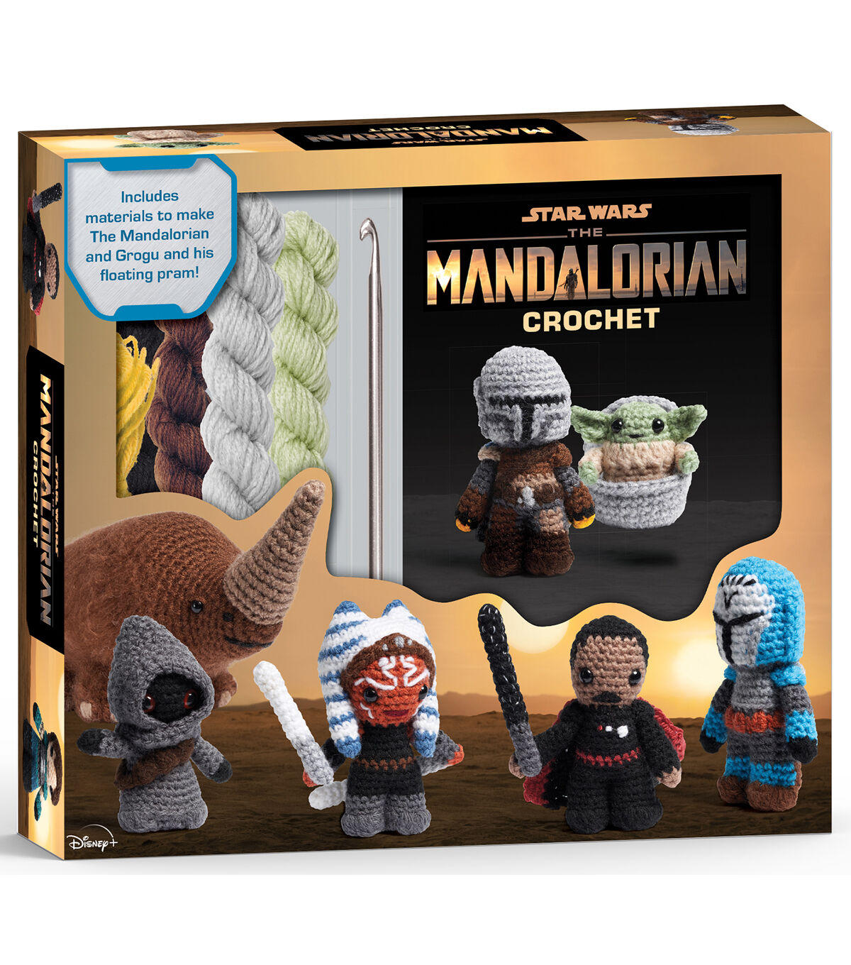 Star Wars: The Mandalorian Crochet shows you how to create 12 characters from the hit series in the Japanese amigurumi style. Whether you're crocheting these projects for yourself or to give as gifts, you'll find hours of enjoyment in this kit created with approval from Lucasfilm. Included are a paperback book complete with photos and step-by-step instructions, as well as the materials needed to make the Mandalorian, Grogu(TM), and his floating pram, ten colors of yarn, two safety eyes, a steel crochet hook, a tapestry needle, embroidery floss, and stuffing. When you're done, you can tuck baby Grogu(TM) into his pram for a well-earned nap! Additional project instructions show you how to crochet Ahsoka Tano, IG-11, Moff Gideon, and other favorites from the show.