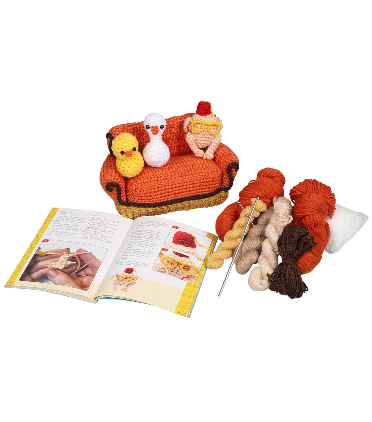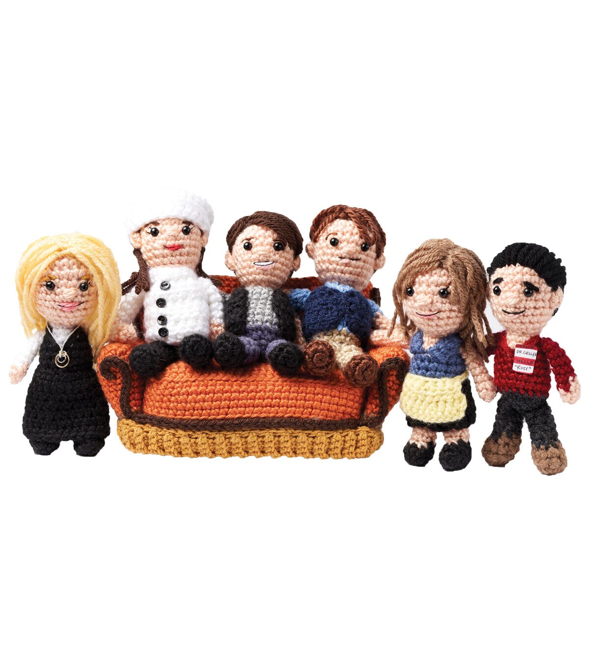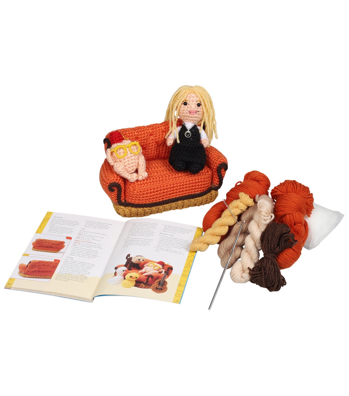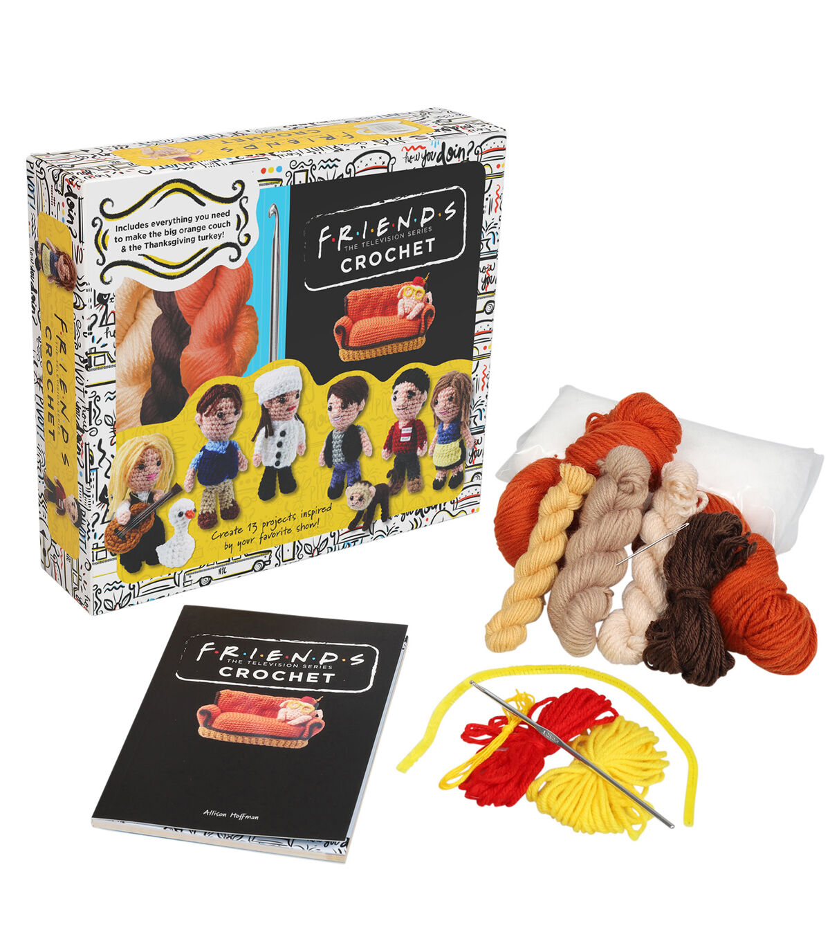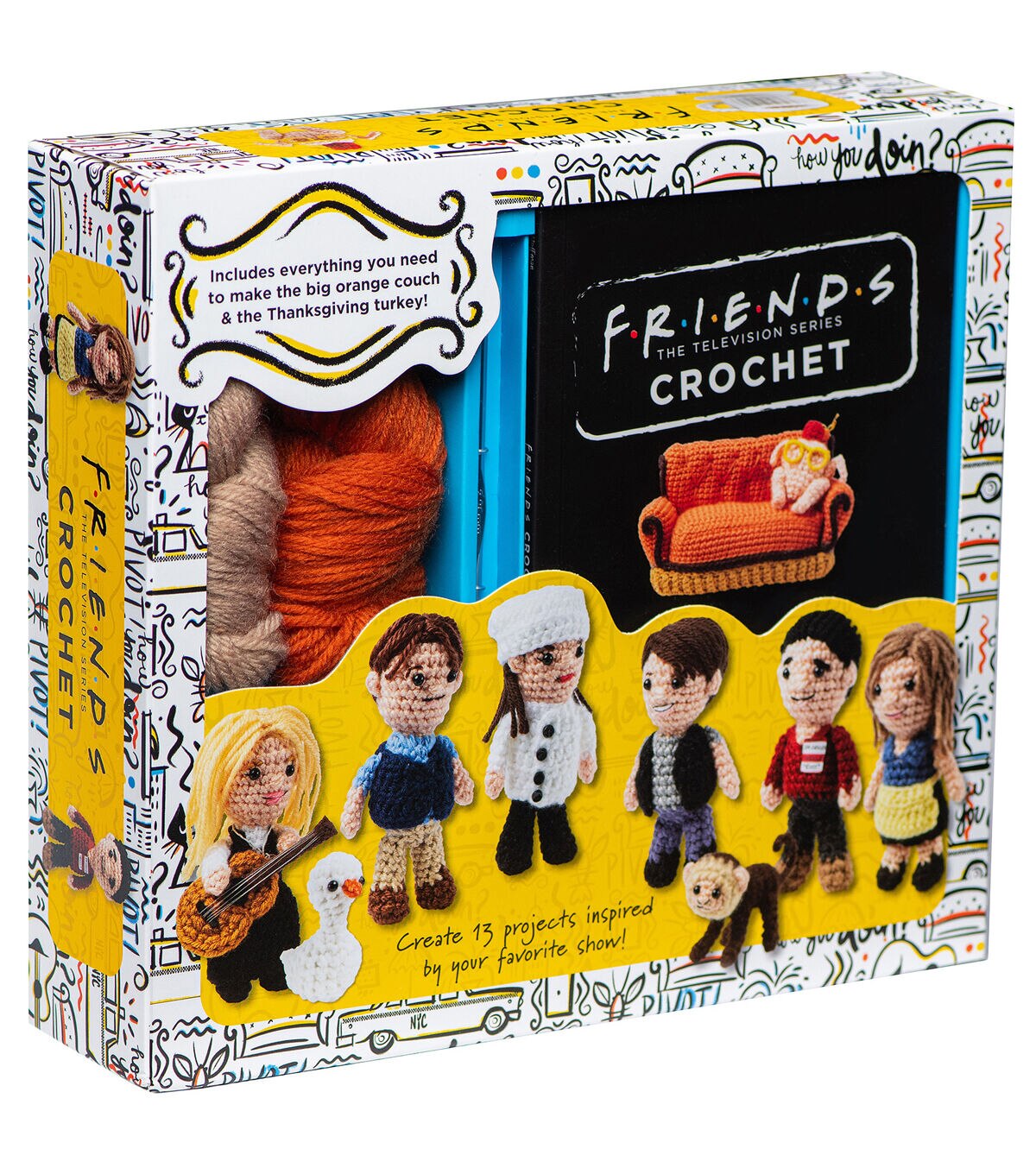 Crochet your favorite characters and re-create iconic scenes from the beloved TV series with Friends Crochet. Included in this kit are an 80-page paperback book complete with photos and step-by-step instructions, as well as the materials needed to make the Thanksgiving turkey and the famous Central Perk orange couch. Additional project instructions show you how to crochet Rachel, Ross, Phoebe, Joey, Monica, Chandler, a coffee cup, Marcel the monkey, Phoebe's guitar, and the chick and duck.