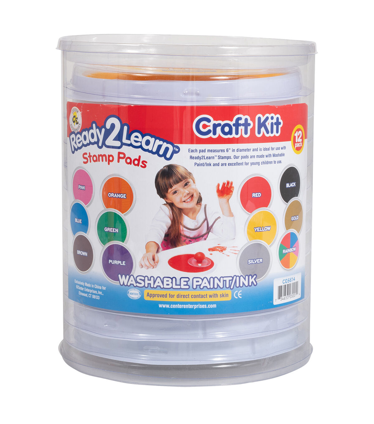 Made with washable paint/ink, these pads are excellent for young children to use. Each pad measures 6" in diameter and is ideal for use with stamps. It is approved for direct contact with skin. Conforms to ASTM D-4236. Colors included: Pink, Blue, Brown, Orange, Green, Purple, Red, Yellow, Silver, Black, Gold and Rainbow. Includes 12 stamp pads per kit.