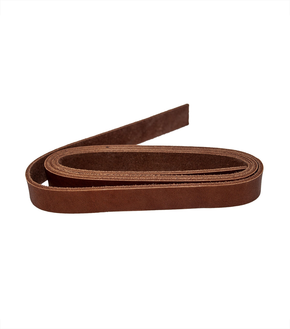 - This sturdy leather strip is made of pre-dyed 5-7 oz leather. Cut from lace cowhide, this is a strong but narrow strip which makes it great for wearable producs such as bags, purses, fashion belts, and suspenders. It can also be used for drawer pulls or handles. The strip is 3/4" x 48".