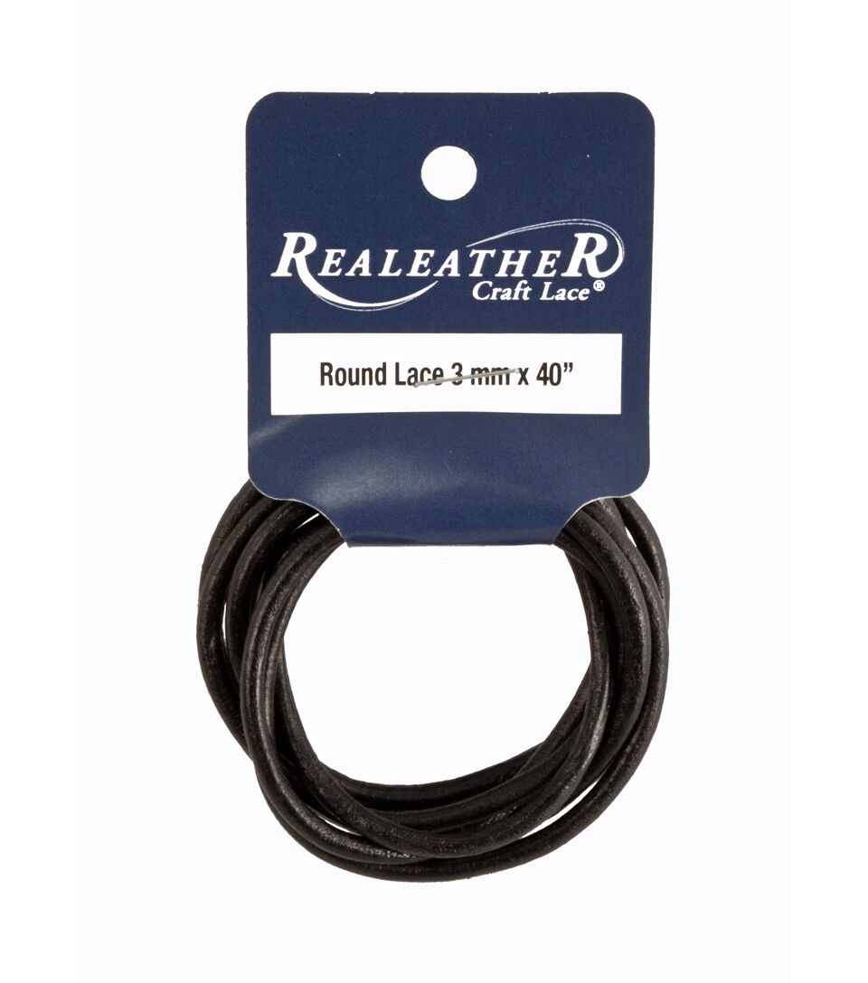 Popular among jewelry crafters, our round leather lace is cut from veg-tanned leather and then shaped into a round cord. All of our round leather cording is stained and then waxed for a super smooth and soft feel. The finish is bright, flexible and doesn’t crack or peel. This package contains 3mmx40" wide lace on a spool. Made in USA.