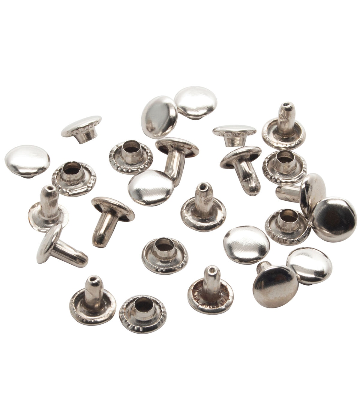 These small decorative yet useful hardware are great for joining layers of leather, fabric or canvas. These shallow dome capped rivets are available in 1/4" and the popular nickel finish. This pack includes 100 rivets and posts.