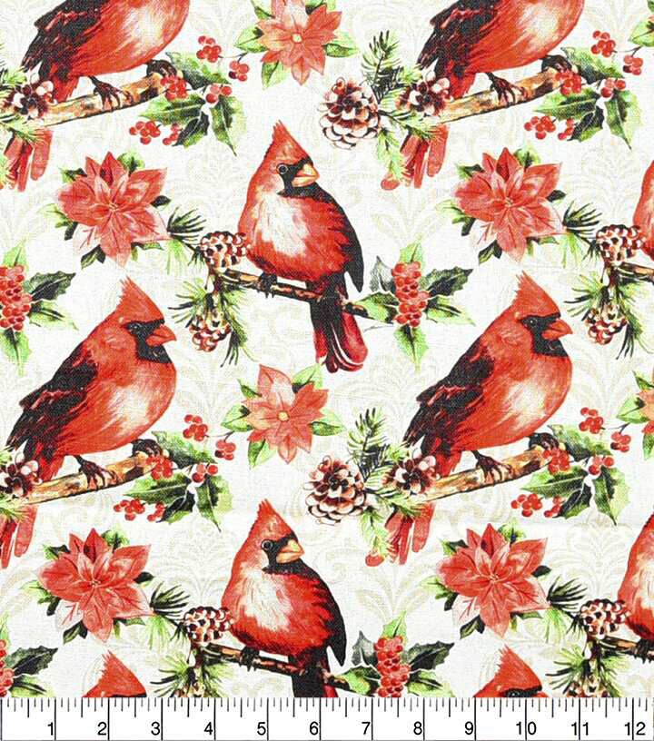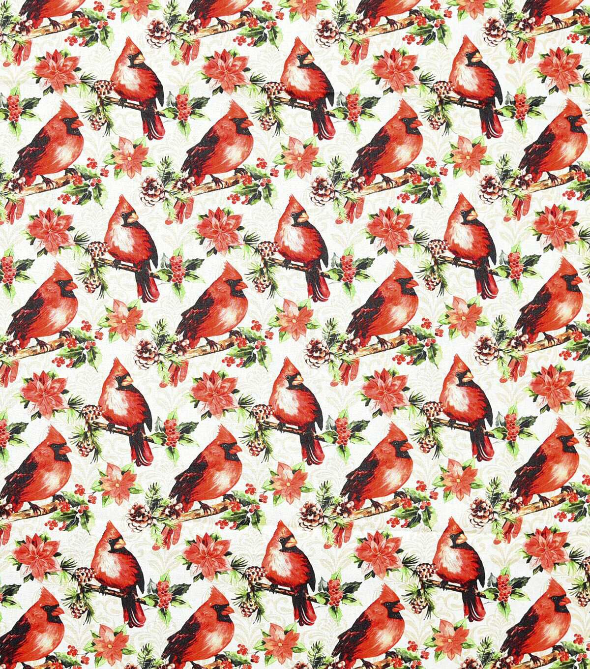 • Red Cardinals on Branches Christmas Cotton Fabric