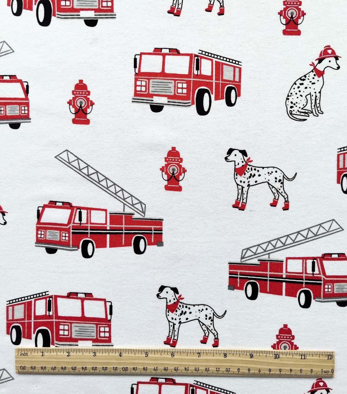Transform your little one's nursery into a firefighting station with this adorable Red Firefighter Icons Nursery Flannel Fabric. Made from 100% cotton, this fabric is soft, cozy, and perfect for creating a variety of DIY projects such as blankets, crib sheets, and more. The fabric features a fun and colorful design of firefighter icons, including fire trucks, helmets, and hoses, that will spark your child's imagination and inspire them to become a hero.