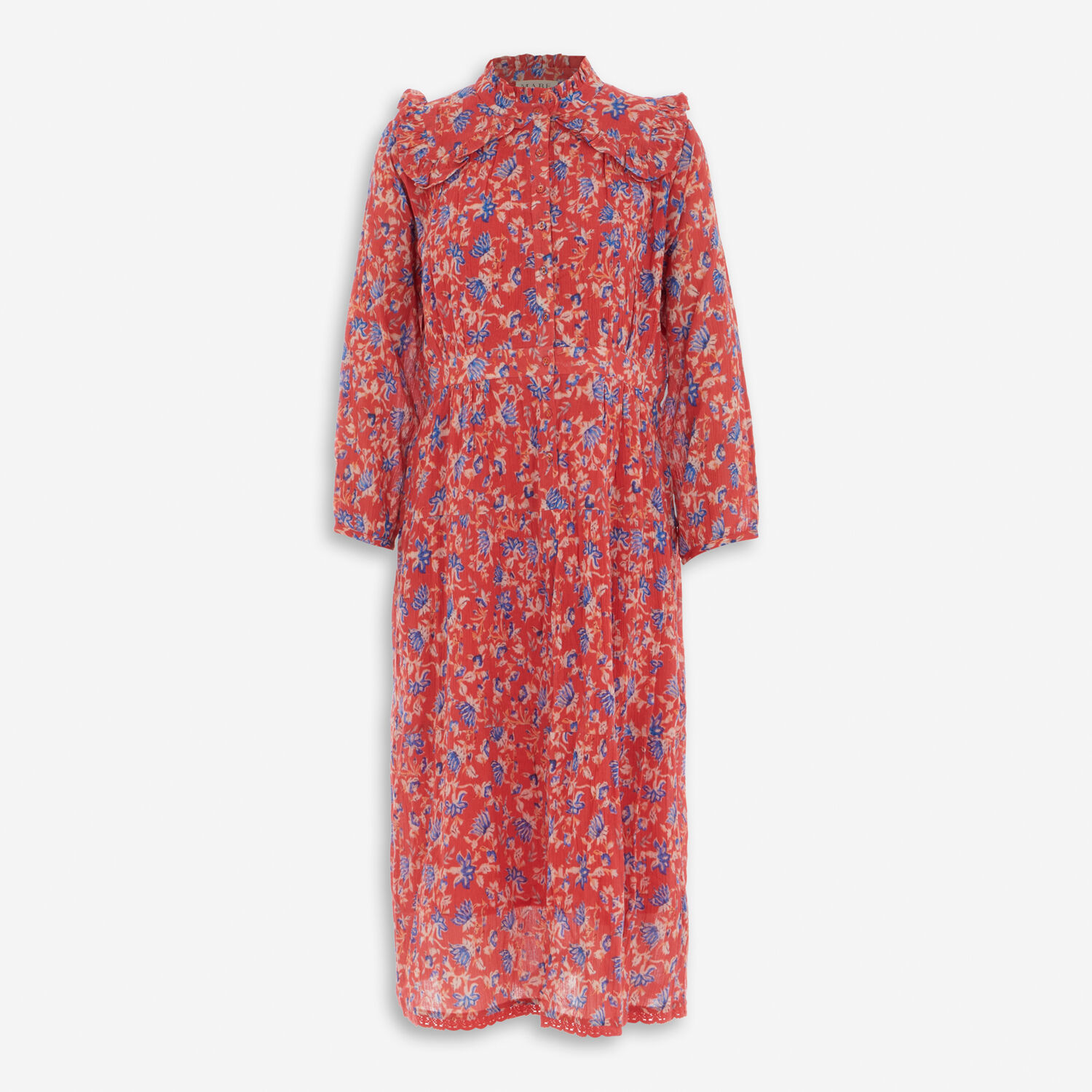 • Red Floral Midi Dress