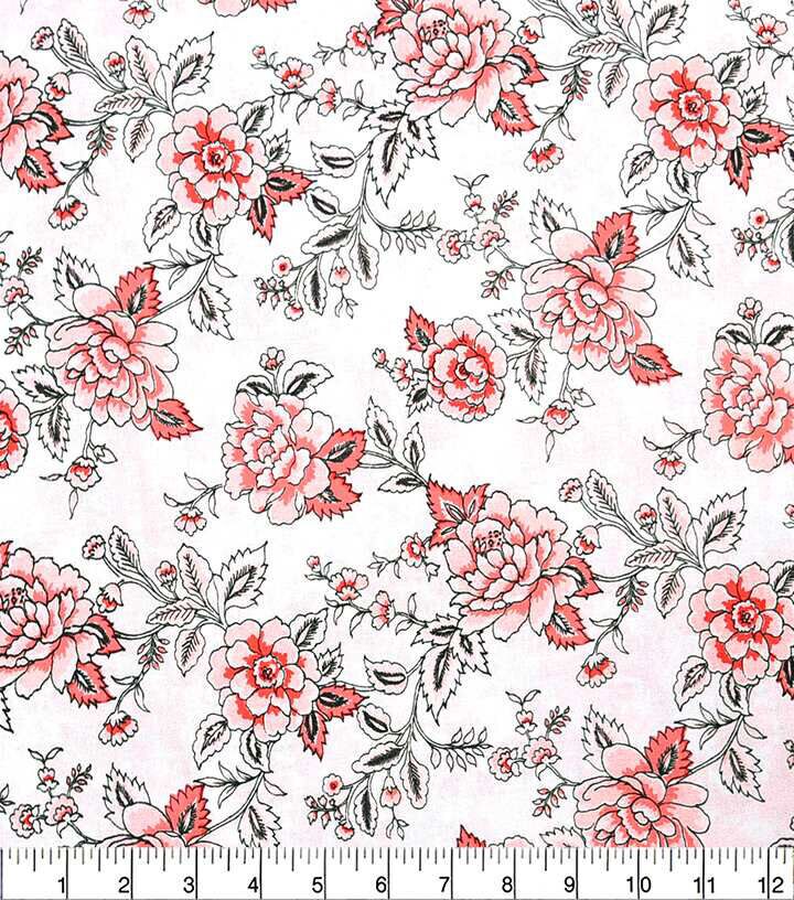 Bring a Pop of Color to Your Next Project with Red Floral on White Quilt Cotton Fabric by Keepsake Calico