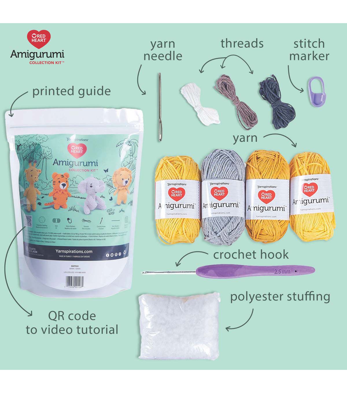 Unlock your creativity with our Red Heart Amigurumi kits. These Amigurumi characters are perfect for collecting and gifting. Each kit contains everything you need to create your Red Heart Amigurumi character and includes a step-by-step video tutorial, making crafting a breeze. With 100% recycled cotton yarn and all the essentials in one package, this kit has everything you need to enjoy year-round family fun, gifting, and trendy collectible projects.