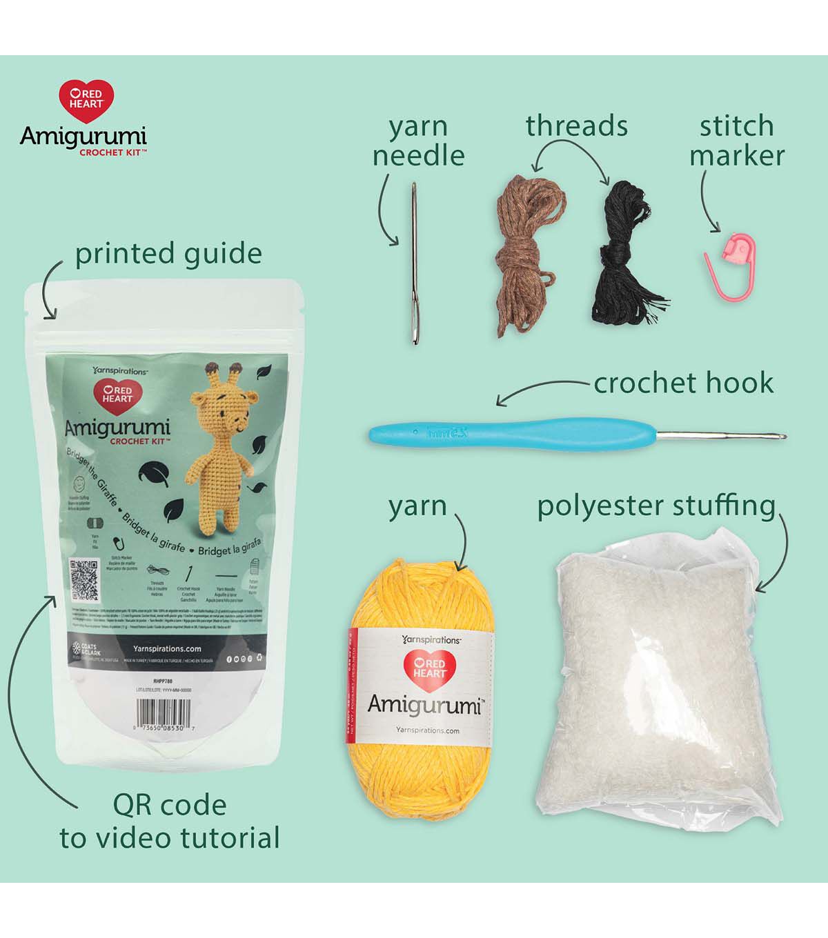 Unlock your creativity with our Red Heart Amigurumi kits. These Amigurumi characters are perfect for collecting and gifting. Each kit contains everything you need to create your Red Heart Amigurumi character and includes a step-by-step video tutorial, making crafting a breeze. With 100% recycled cotton yarn and all the essentials in one package, this kit has everything you need to enjoy year-round family fun, gifting, and trendy collectible projects.