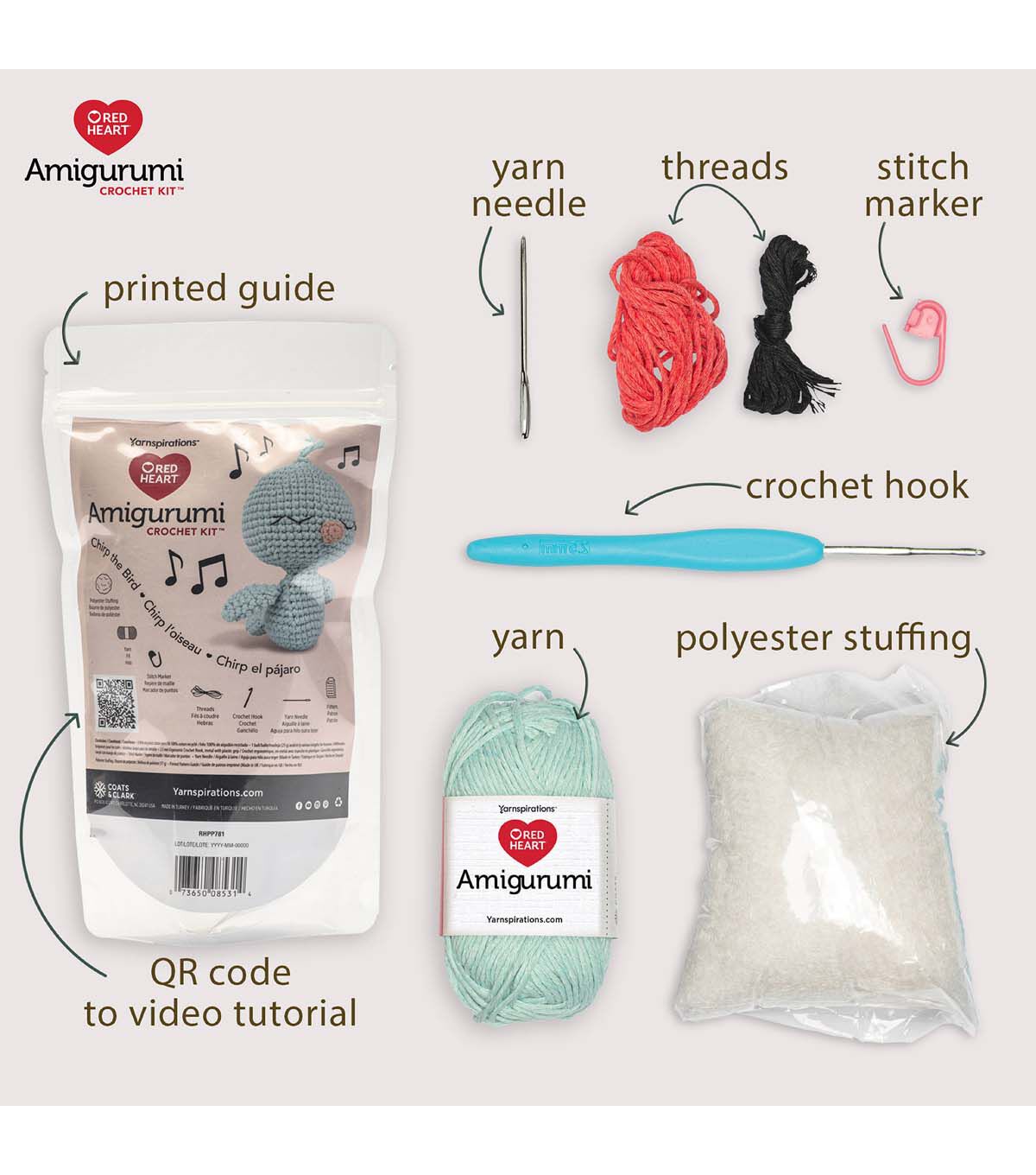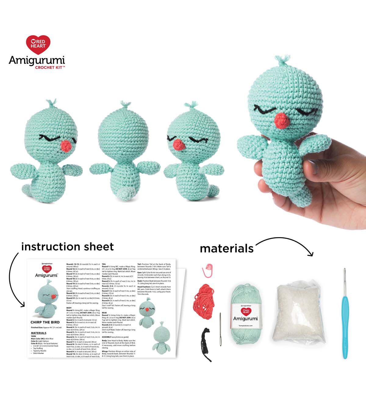 Unlock your creativity with our Red Heart Amigurumi kits. These Amigurumi characters are perfect for collecting and gifting. Each kit contains everything you need to create your Red Heart Amigurumi character and includes a step-by-step video tutorial, making crafting a breeze. With 100% recycled cotton yarn and all the essentials in one package, this kit has everything you need to enjoy year-round family fun, gifting, and trendy collectible projects.