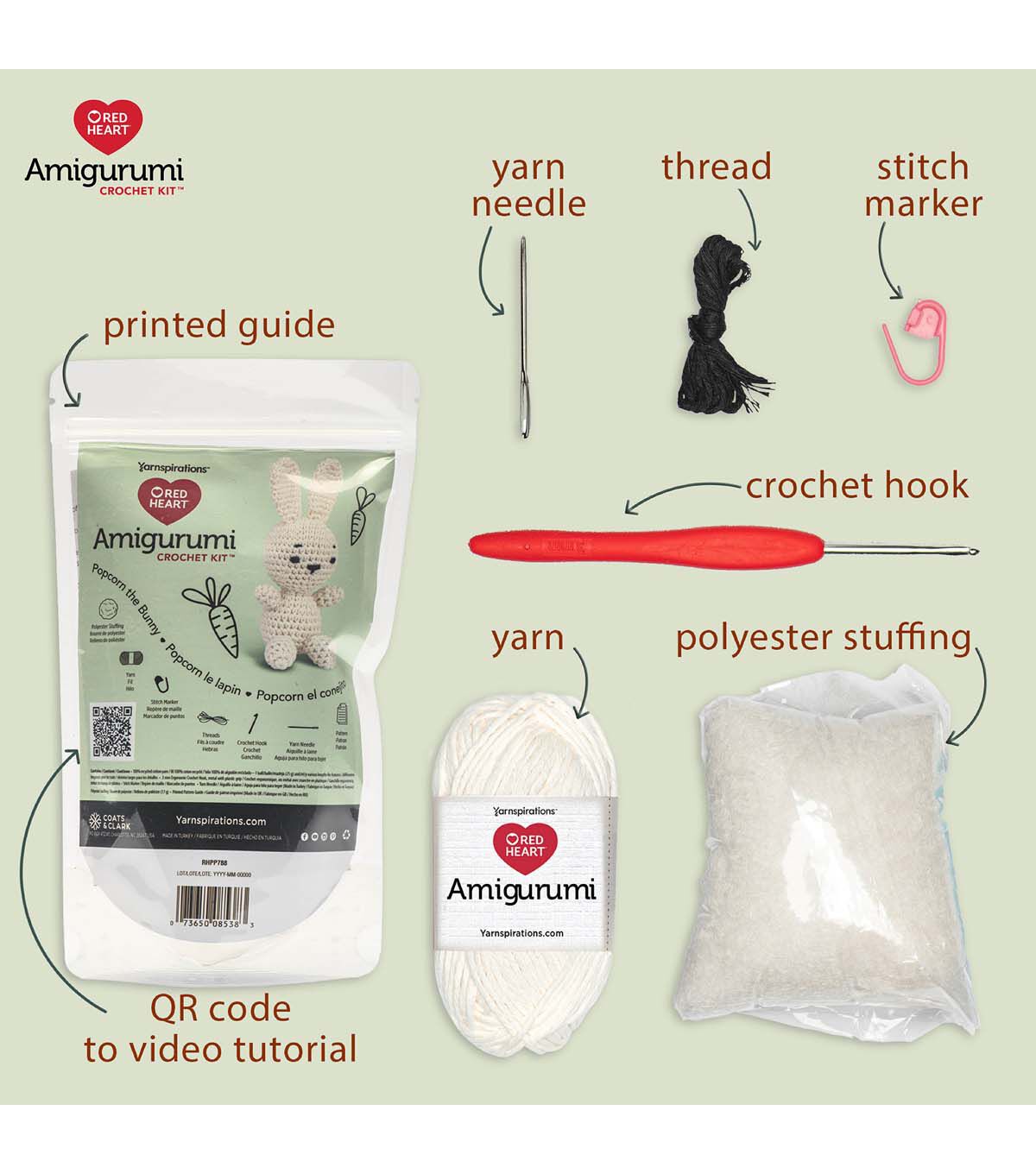 Unlock your creativity with our Red Heart Amigurumi kits. These Amigurumi characters are perfect for collecting and gifting. Each kit contains everything you need to create your Red Heart Amigurumi character and includes a step-by-step video tutorial, making crafting a breeze. With 100% recycled cotton yarn and all the essentials in one package, this kit has everything you need to enjoy year-round family fun, gifting, and trendy collectible projects.