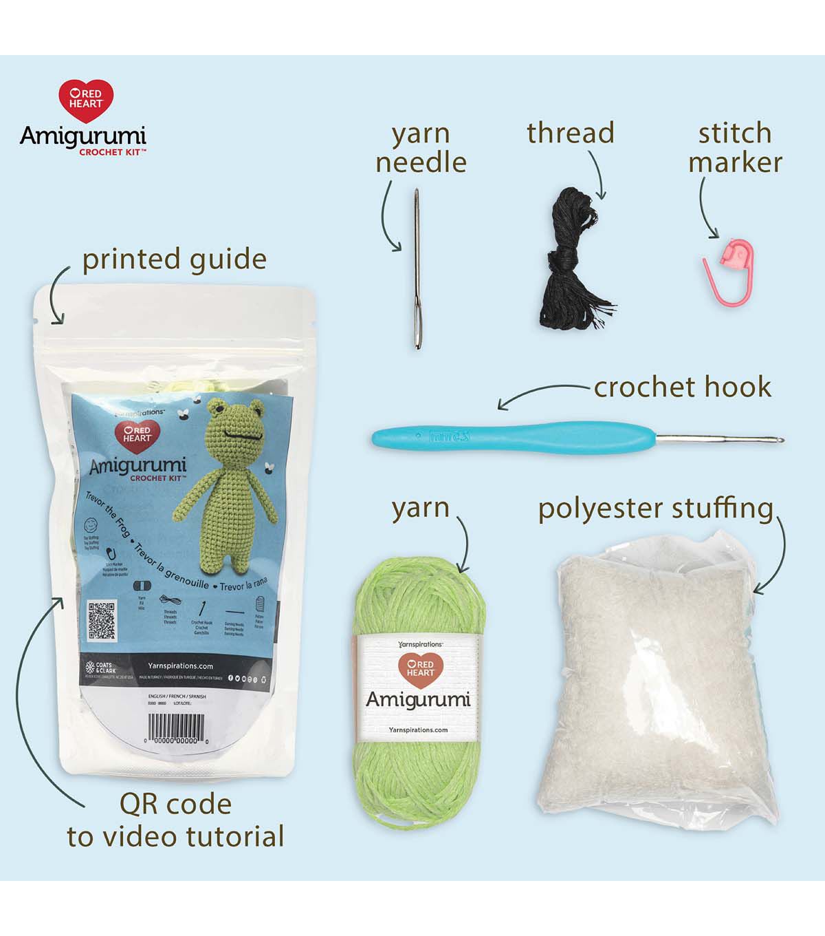 Unlock your creativity with our Red Heart Amigurumi kits. These Amigurumi characters are perfect for collecting and gifting. Each kit contains everything you need to create your Red Heart Amigurumi character and includes a step-by-step video tutorial, making crafting a breeze. With 100% recycled cotton yarn and all the essentials in one package, this kit has everything you need to enjoy year-round family fun, gifting, and trendy collectible projects.