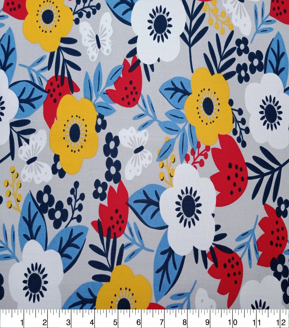 Red & Navy Floral Quilt Cotton Fabric by Quilter's Showcase