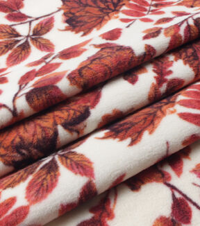 Red & Orange Leaves Anti Pill Fleece Fabric