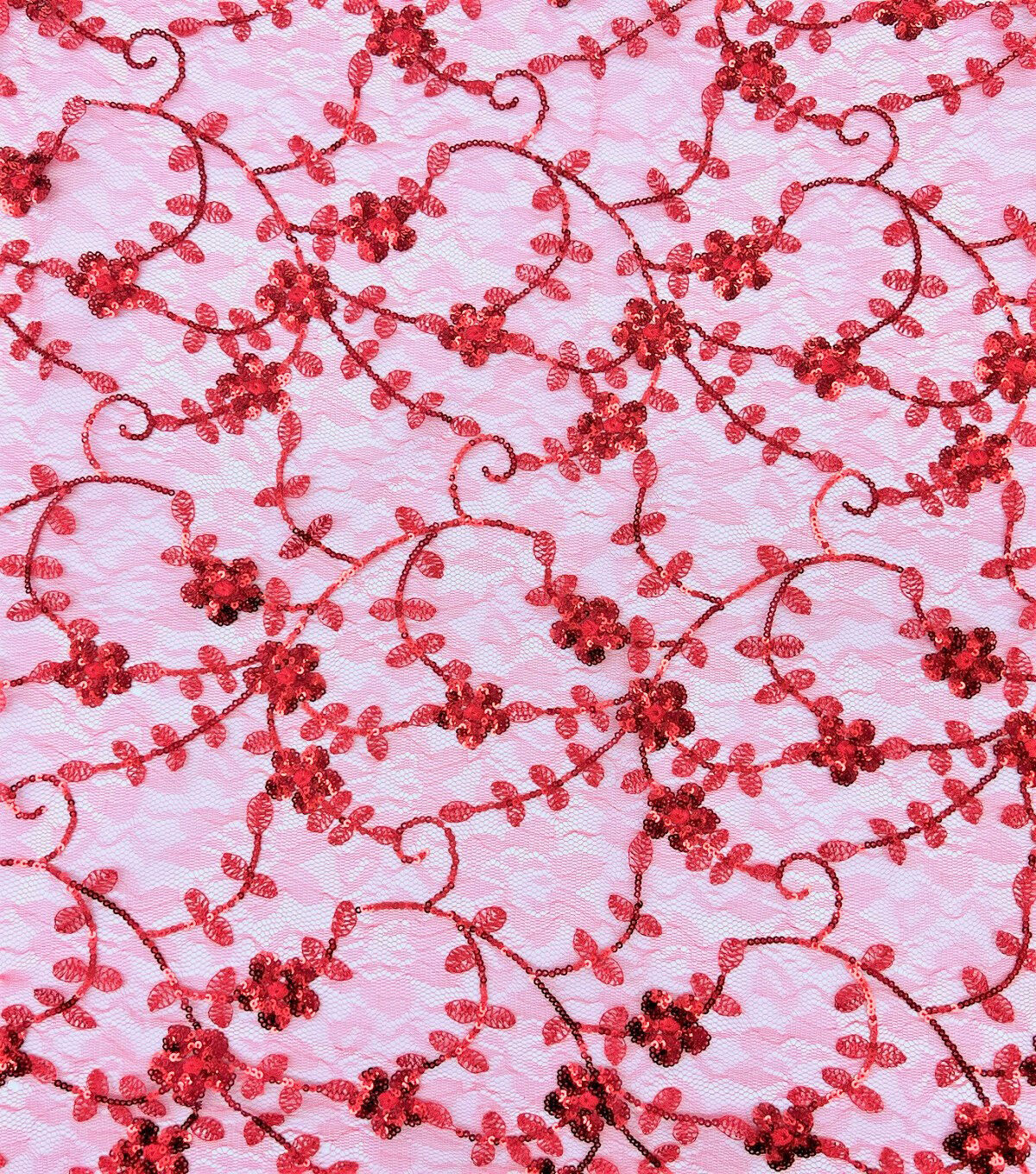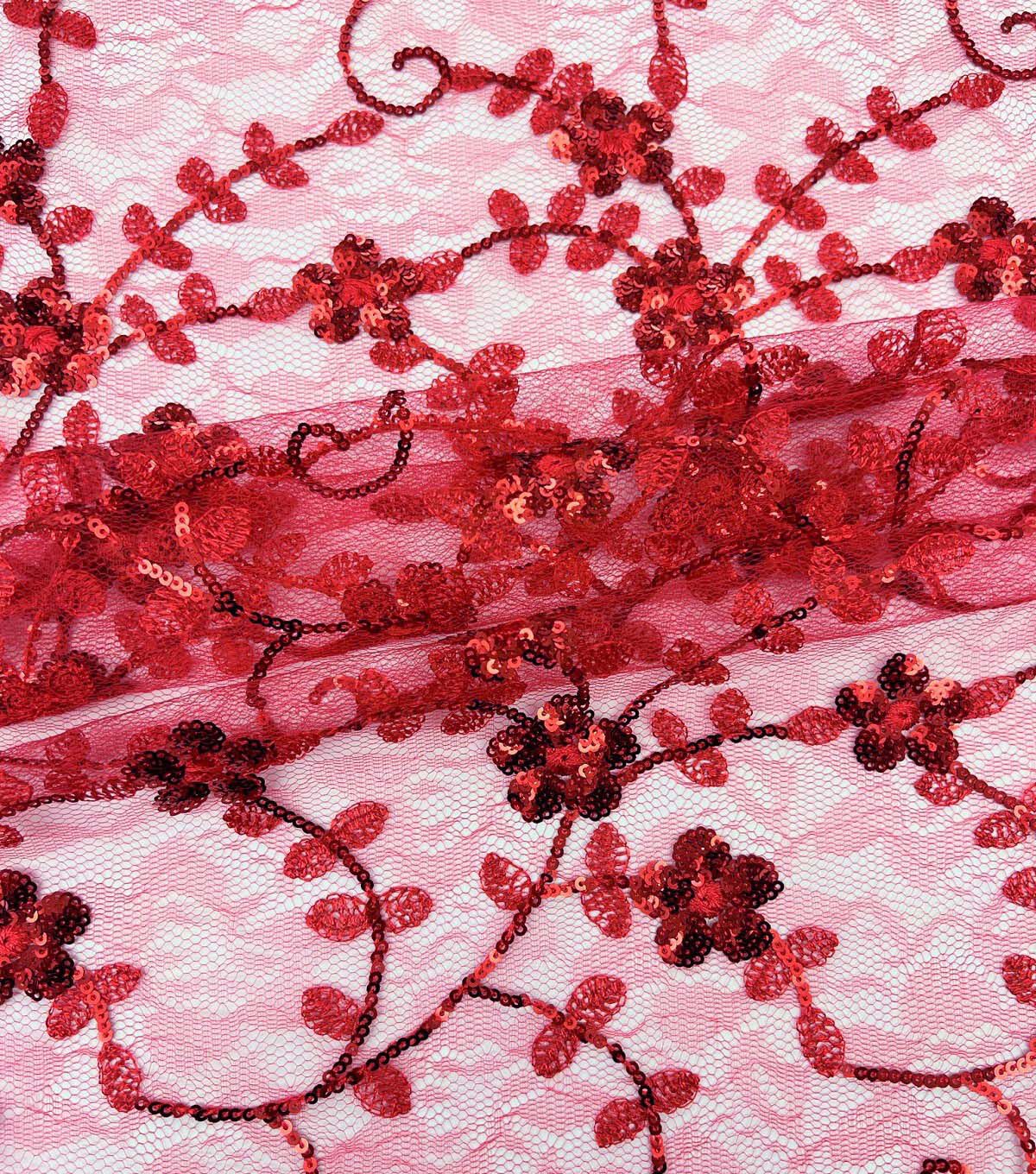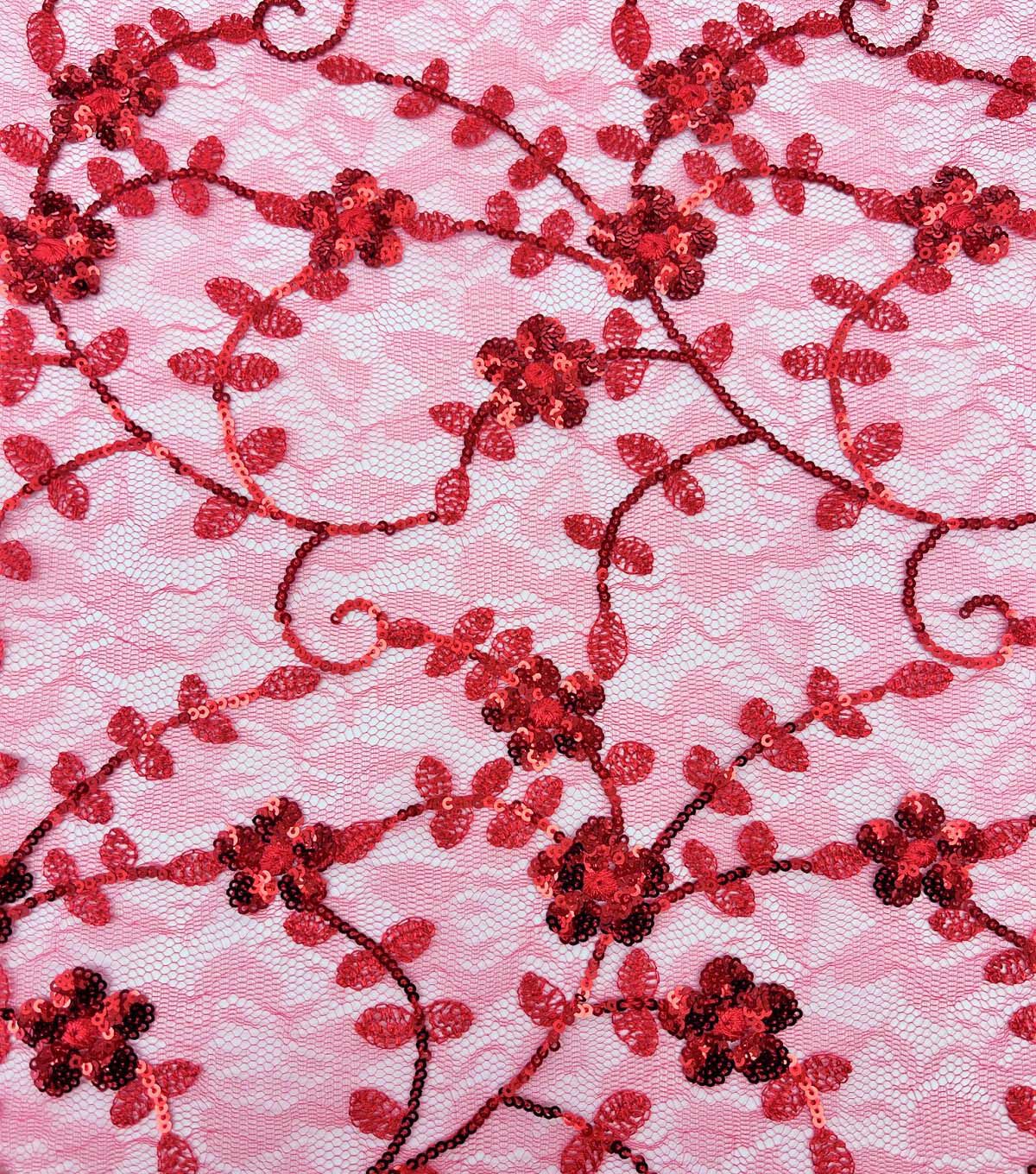• Red & Pink Embroidered Lace Fabric by Sew Sweet