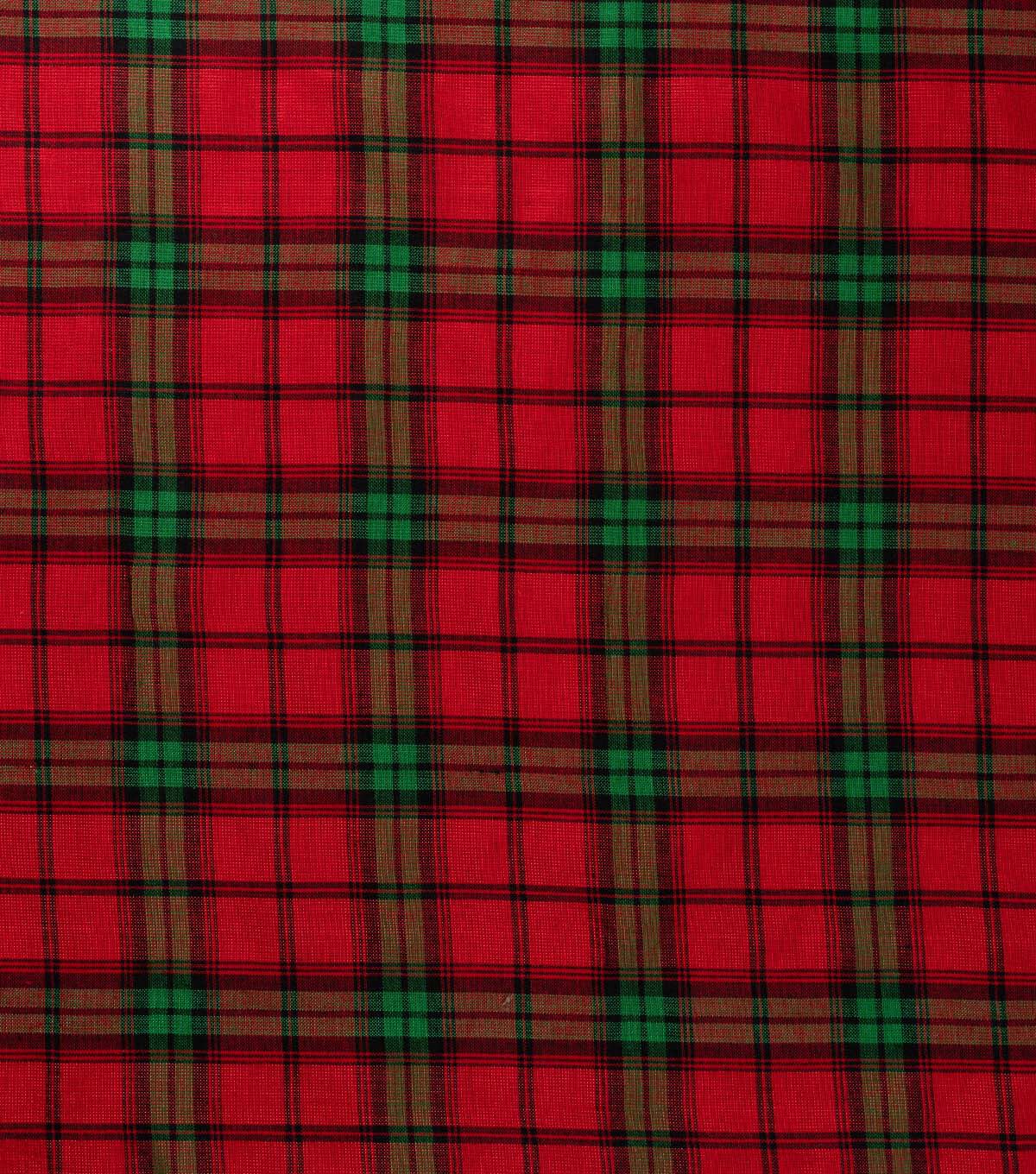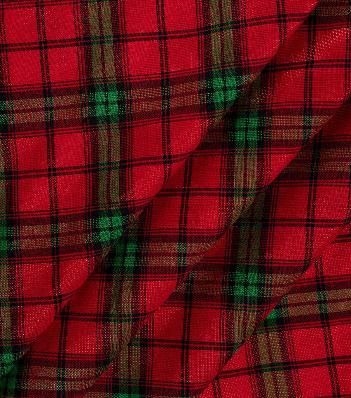 Get Festive with Red Plaid Christmas Metallic Cotton Fabric