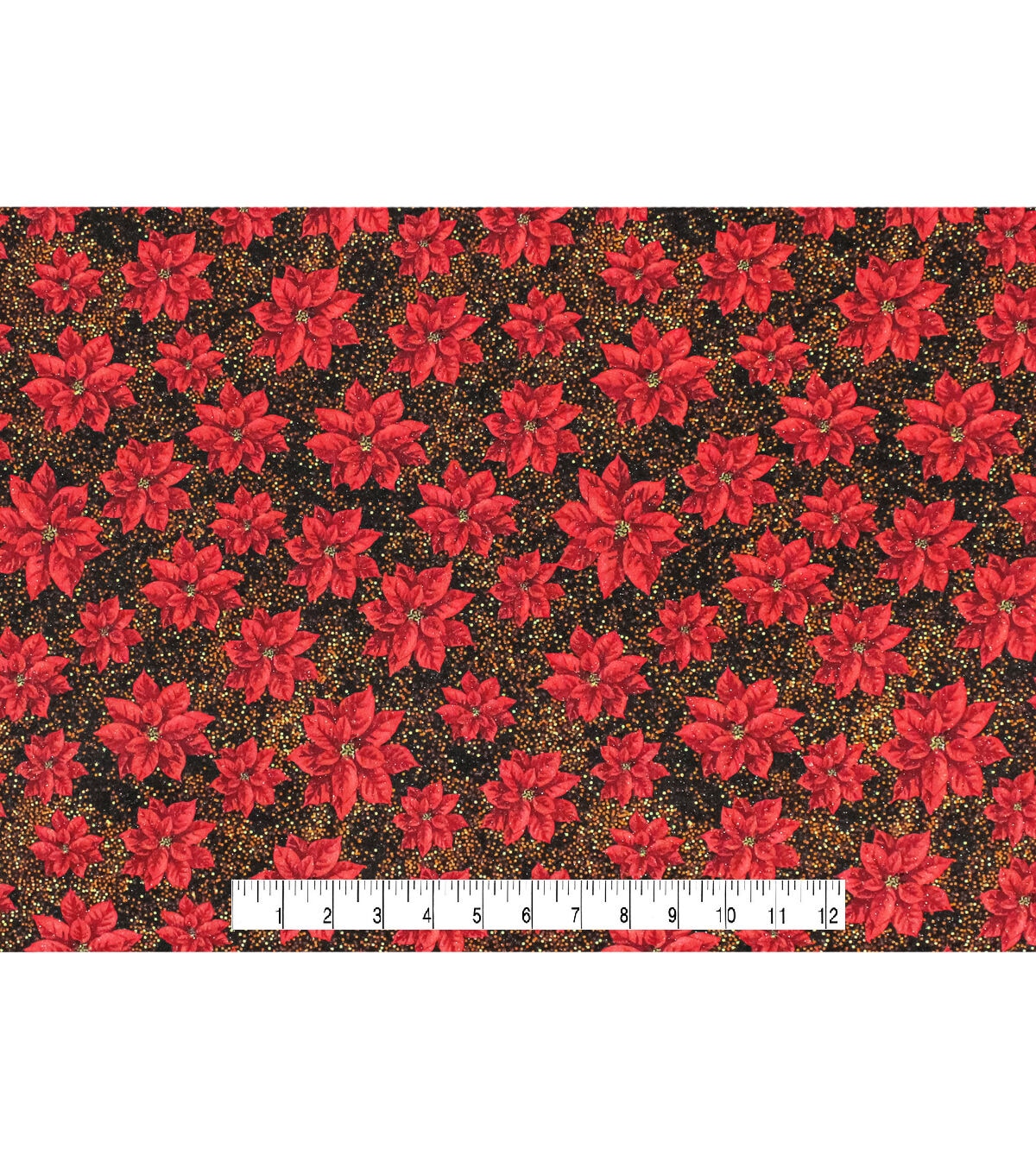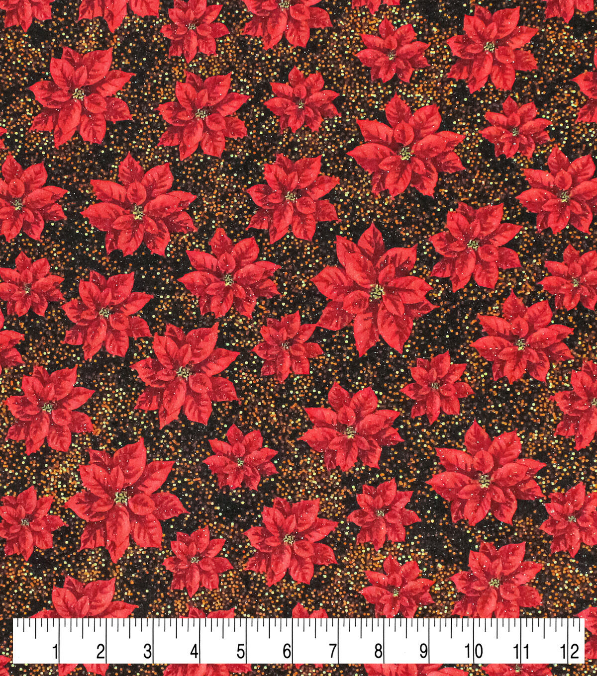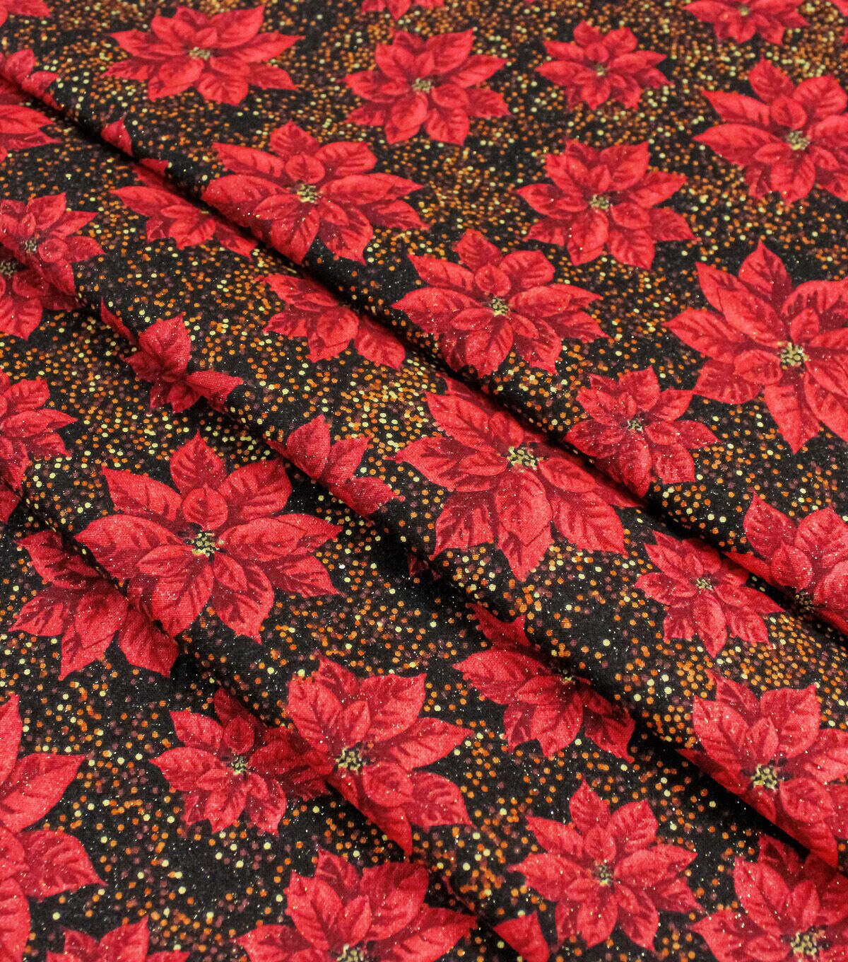 Get in the Holiday Spirit with Red Poinsettias & Dots Christmas Glitter Cotton Fabric