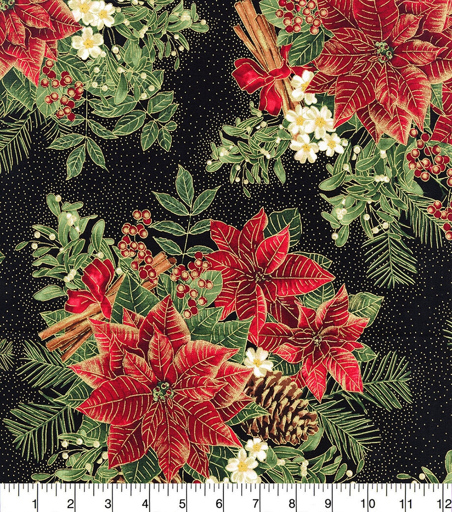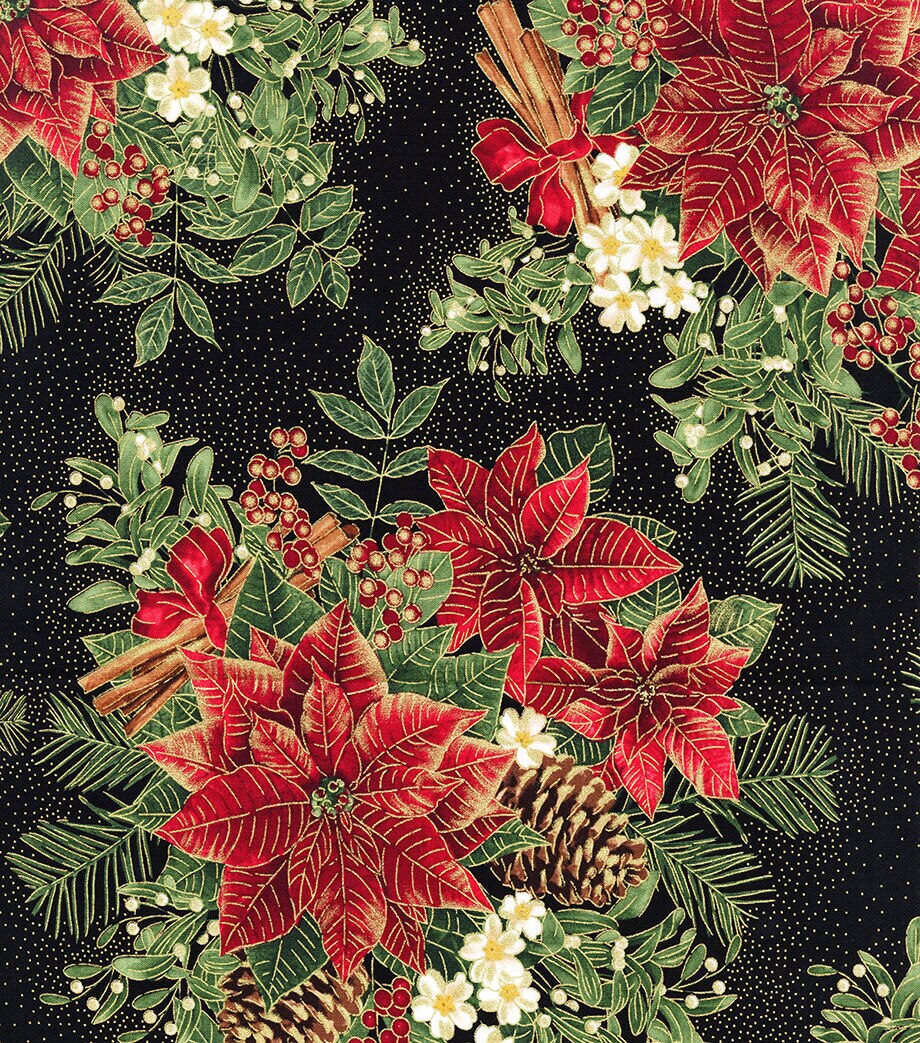 Get in the Holiday Spirit with Red Spice Poinsettias Christmas Metallic Cotton Fabric