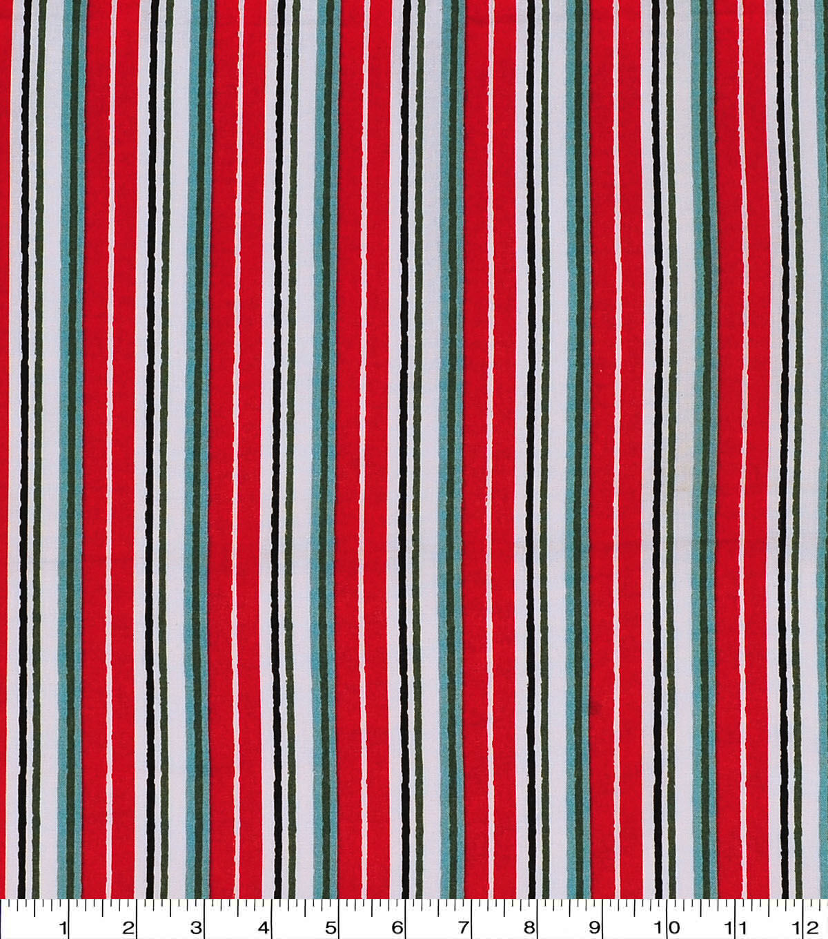 Red & Teal Striped Christmas Cotton Fabric