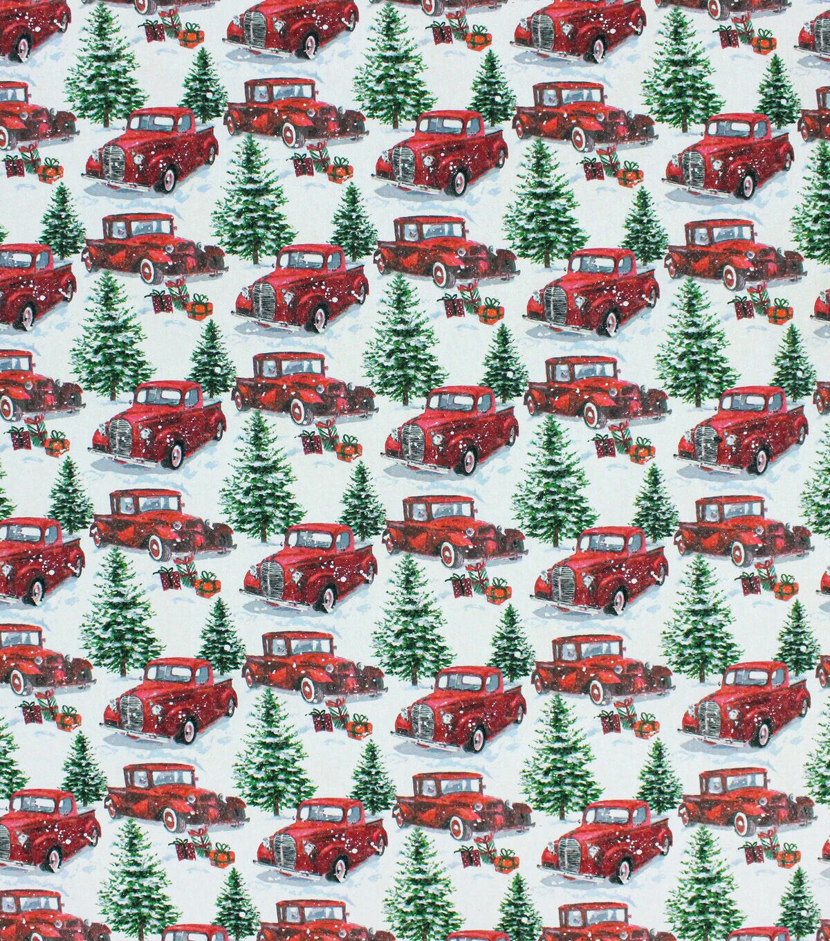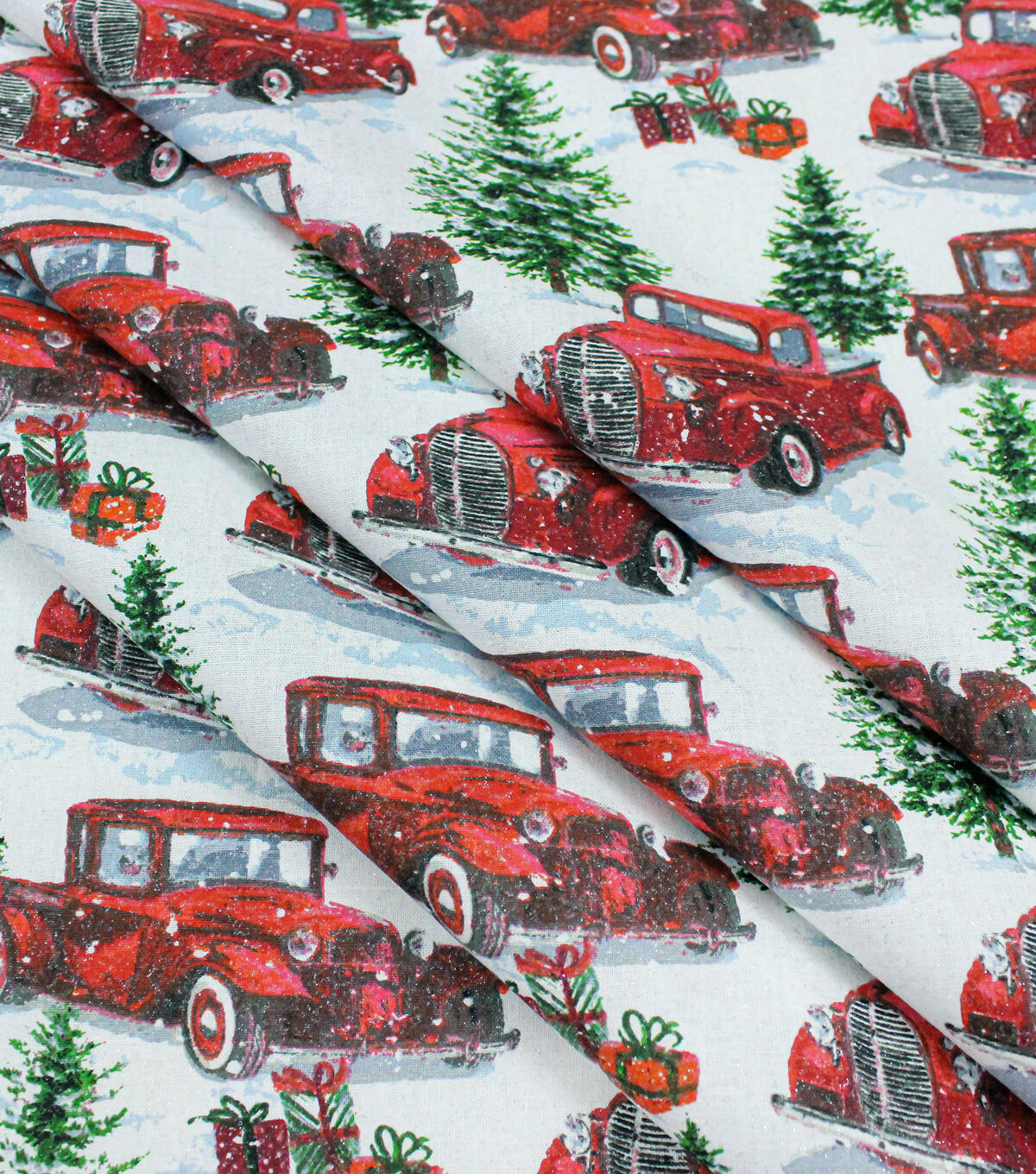 Get in the Holiday Spirit with Red Truck in the Snow Christmas Glitter Cotton Fabric