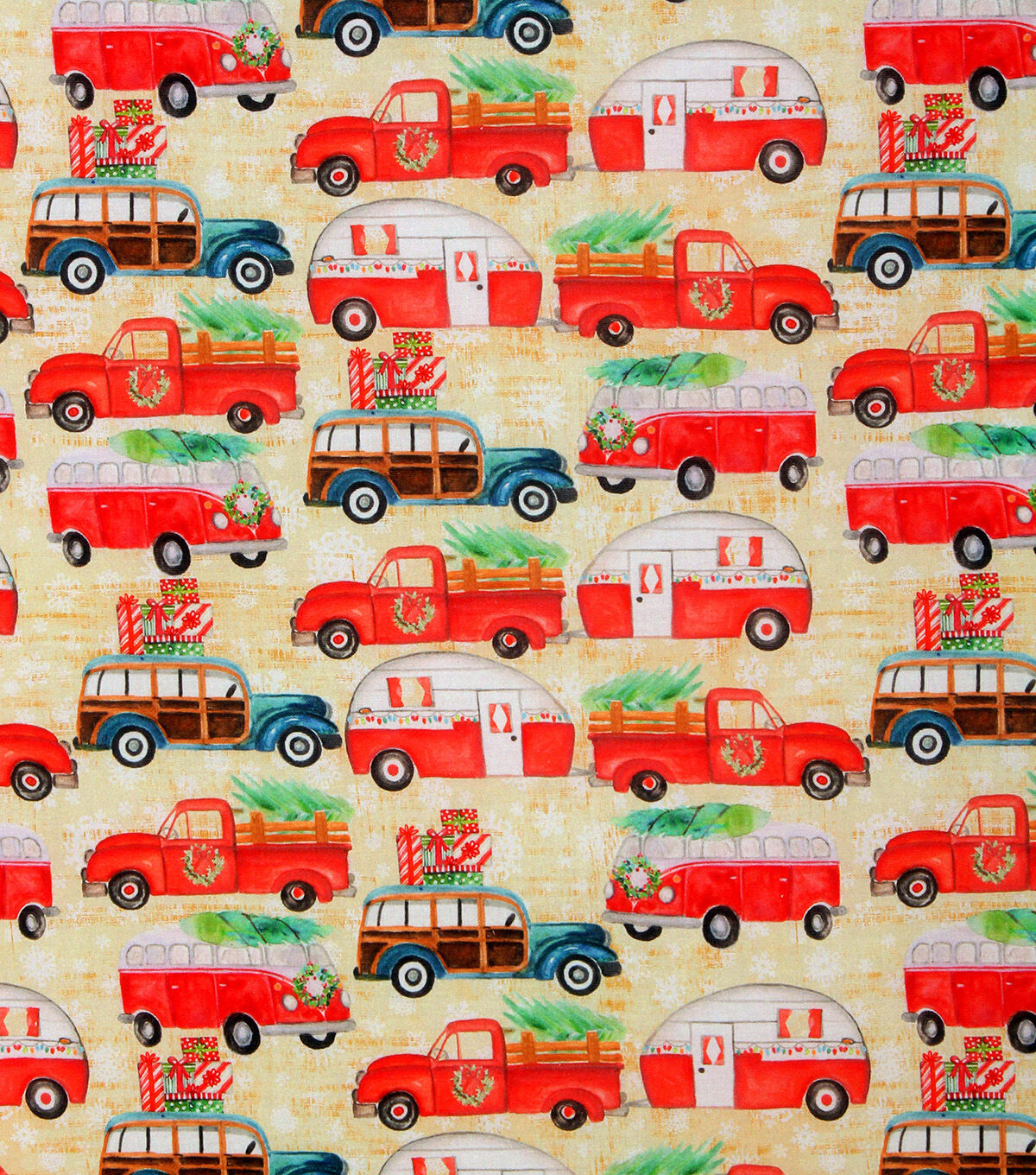 Red Truck Travels Christmas Cotton Fabric