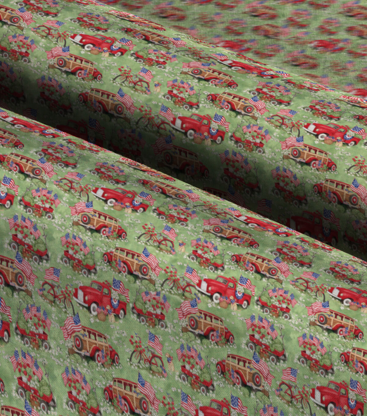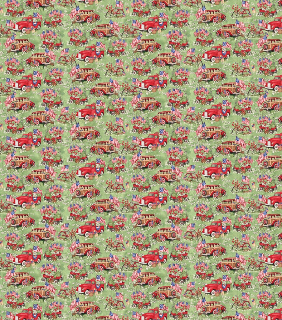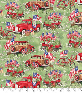 Red Trucks and Wagons Patriotic Cotton Fabric