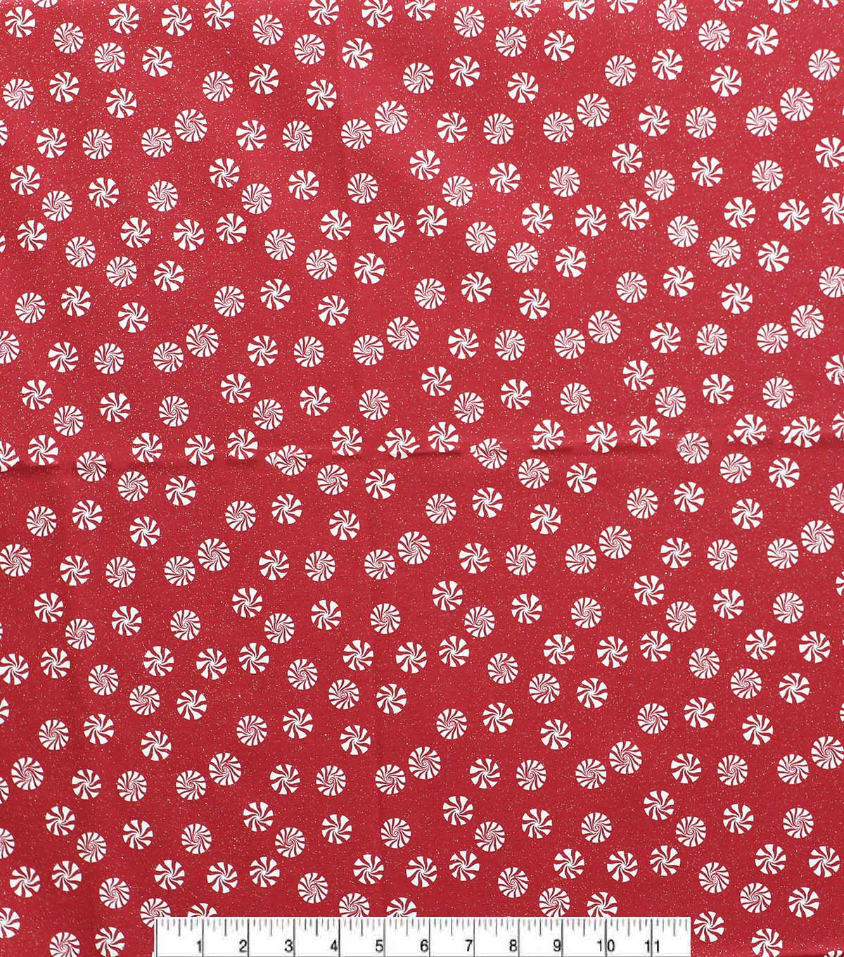 Get in the Holiday Spirit with Red & White Peppermints Christmas Glitter Cotton Fabric