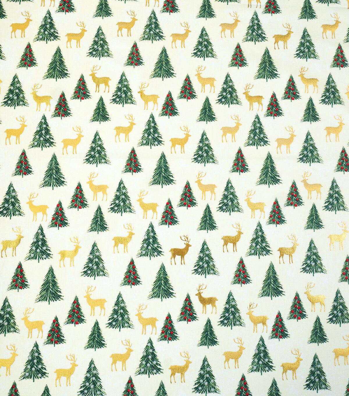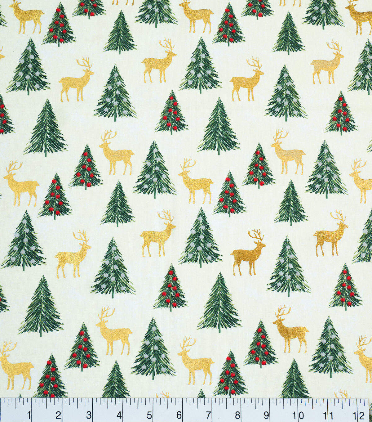 Get into the Festive Spirit with Reindeer & Trees on White Christmas Metallic Cotton Fabric