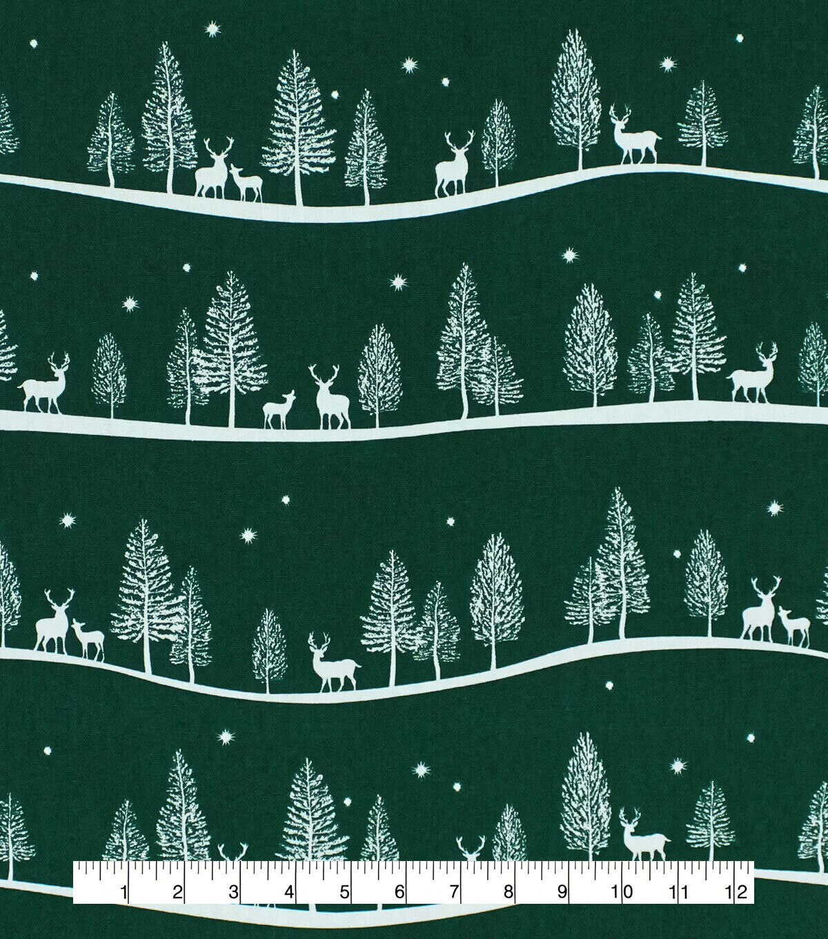 • Reindeer with Pine Trees Cotton Canvas Home Decor Fabric