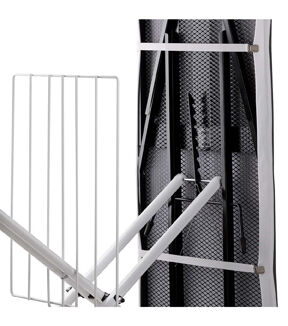 Tackle the toughest ironing tasks using the Reliable Corporation 2-in-1 Home Ironing Board with Vera Foam Cover. This super stable ironing board is the world’s first and only 2-in-1 home ironing and pressing table that provides an ideal extra-large work surface for quilters and knitters. Handmade in Italy, it uses traditional tube-frame construction and a galvanized metal mesh screen for your investment to last. The 320LB includes the new Vera Foam ironing board cover that has a Conex heat-resistant zone and is our most advanced cover yet. The cover’s breathable and lightweight memory foam material combines with the Conex heat-resistant safe zone for temperatures up to and over 700 degrees Farhenheit to deliver the perfect ironing experience
