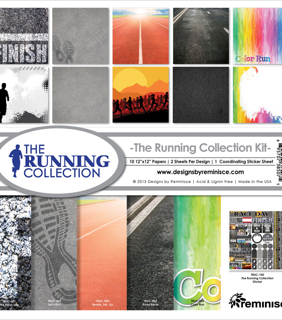 The Reminisce Running Collection Kit is the perfect start to all your paper crafting projects. This package contains ten 12 x 12-inch double-sided sheets in five different designs (two of each) and one 12 x 12-inch sticker sheet. They are acid and lignin free.